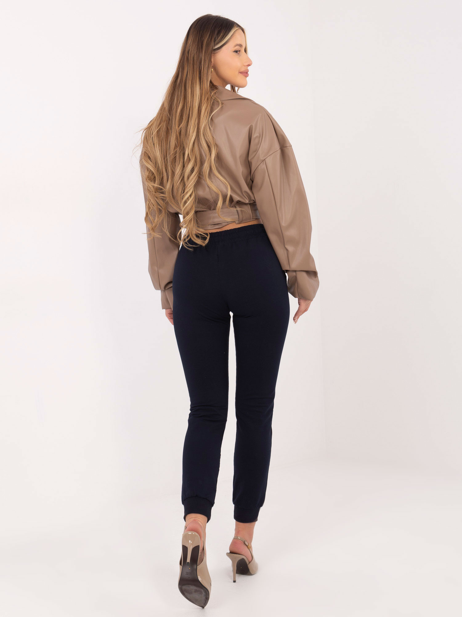 Wymiary spodni w rozmiarze S mierzone na płasko: szerokość w pasie - 35 cm, długość spodni - 99 cm, wysokość stanu - 29 cm.