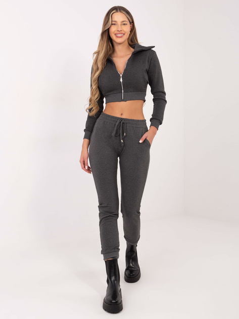Ciemnoszare spodnie Faster Zastanawiasz się czy istnieją idealne spodnie dresowe, które są jednocześnie wygodne i kobiece? Właśnie na nie patrzysz! Nasz nowy model z serii basic spełnia wszystkie powyższe warunki i idealnie wpisuje się w najnowsze trendy. Spodnie mają modny fason slim fit z wąskimi nogawkami zakończonymi miękkim ściągaczem. Dzięki temu świetnie układają się na sylwetce, są wygodne i nie krępują ruchów. Dresy damskie zrobiono z wysokogatunkowej mieszanki materiałów, dzięki czemu są jednocześnie przewiewne, miękkie i miłe w dotyku. Pójdziesz w nich do szkoły, do pracy, a także na spotkanie ze znajomymi. Pasuje do nich wiele innych ubrań, w tym także te nieco bardziej kobiece propozycje. Te bawełniane spodnie dresowe zestawiaj z butami sportowymi lub obcasami, a także z koszulkami lub wizytowymi bluzkami.