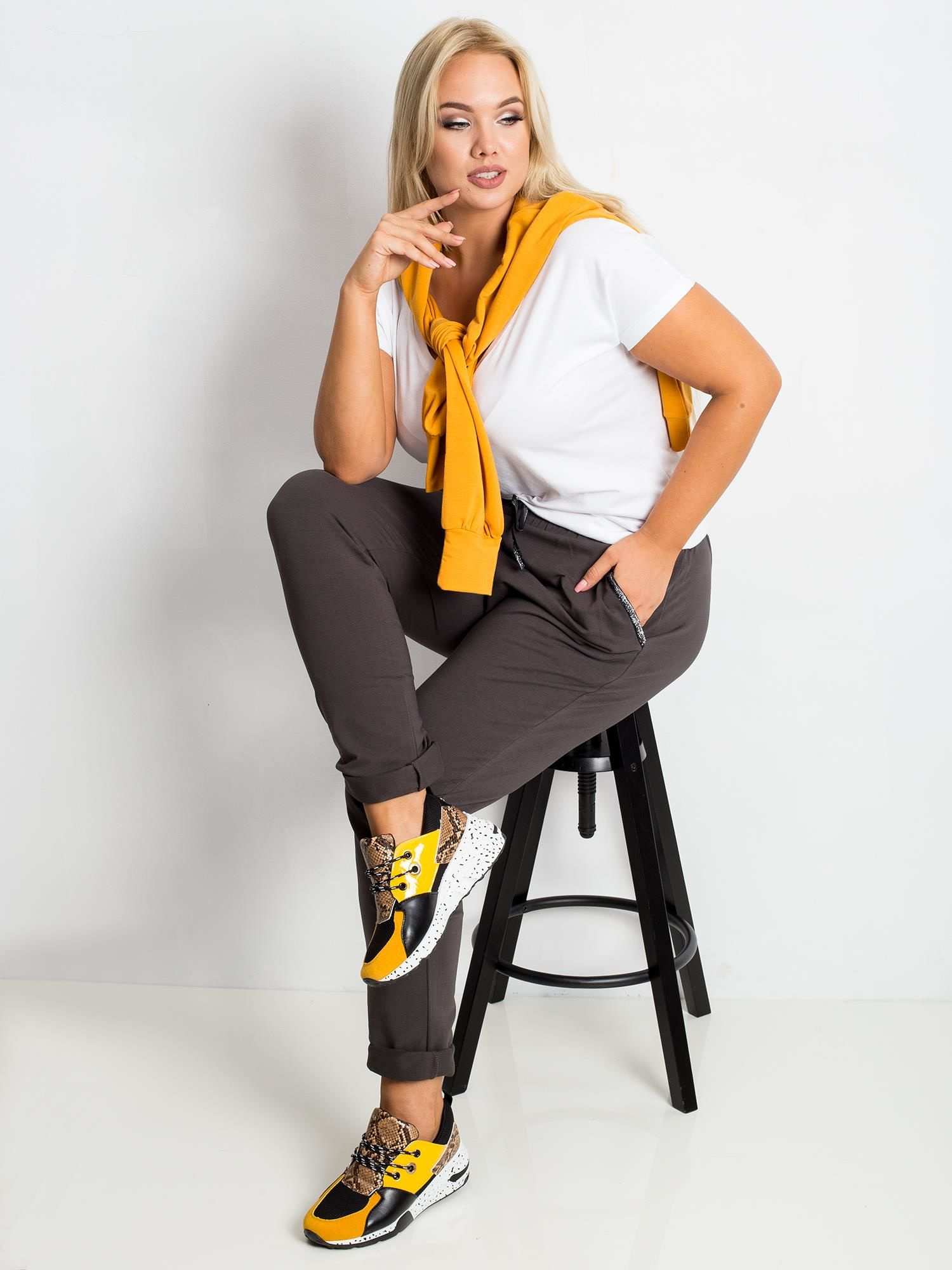 Modelka ma na sobie rozmiar 2XL. Wymiary modelki: wzrost 172 cm, biust 105 cm, talia 76 cm, biodra 105 cm.