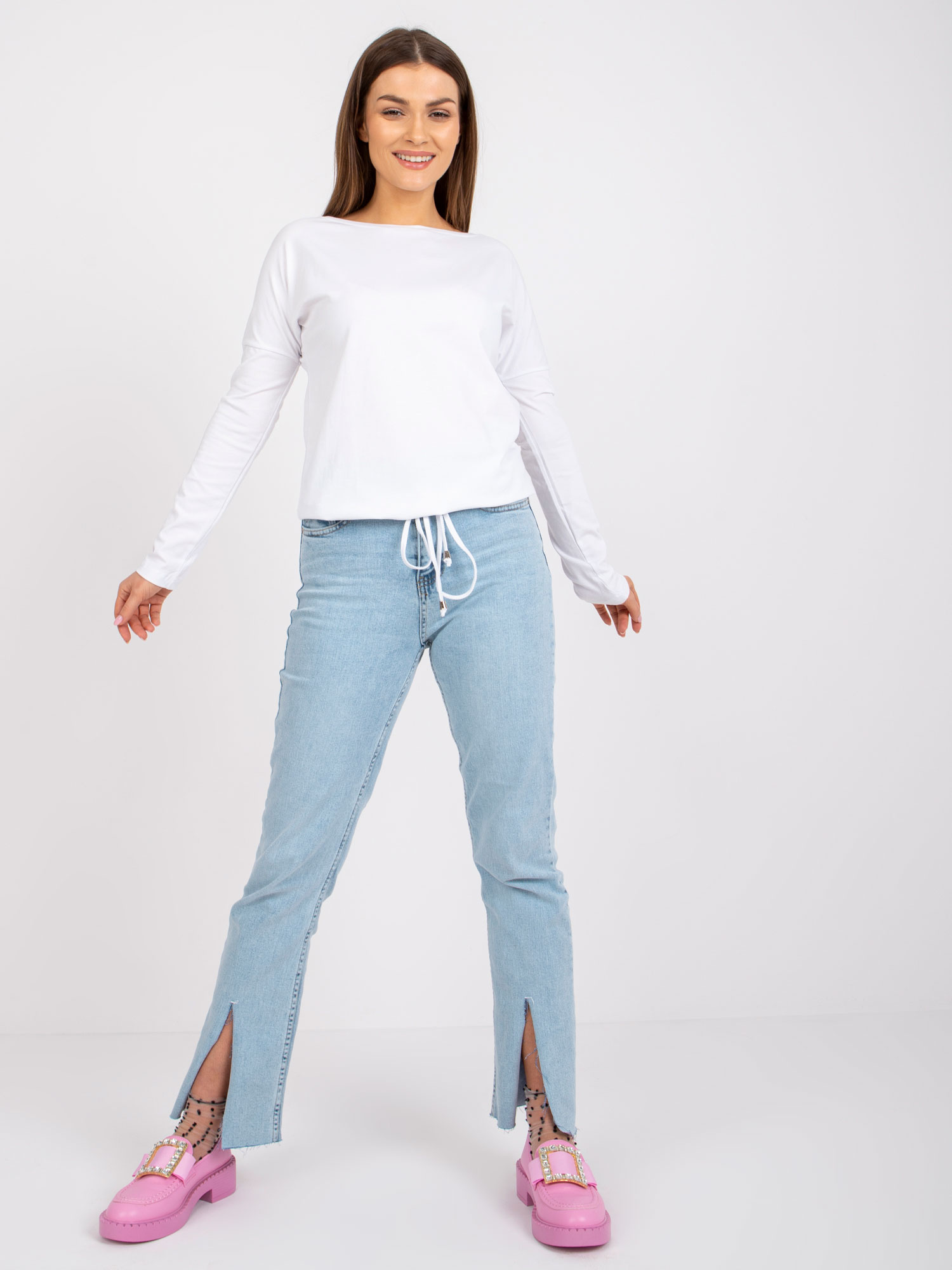 Biała bluzka basic z długim rękawem Carla . Gładka bluzka damska uszyta z bawełny to istny skarb w garderobie każdej kobiety. Założysz ją wszędzie i dosłownie do wszystkiego, a także stworzysz look taki jaki dokładnie chcesz. Bluzka basic to idealna baza wyjściowa do tworzenia przeróżnych zestawów utrzymanych w różnych stylach. Możesz ubrać się z nią na sportowo, casualowo lub nieco bardziej elegancko jeśli masz ochotę. Ta bluzka basic zrobiona jest z najlepszej jakości bawełny z domieszką elastanu, dlatego jest jednocześnie przewiewna i miękka w dotyku. Świetnie się nosi, pięknie układa się na sylwetce i zapewnia maksimum komfortu. Noś ją do naszych spodni z materiału albo jeansów, a także do spodni dresowych lub spódnic.