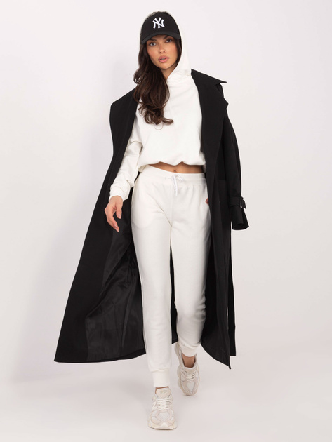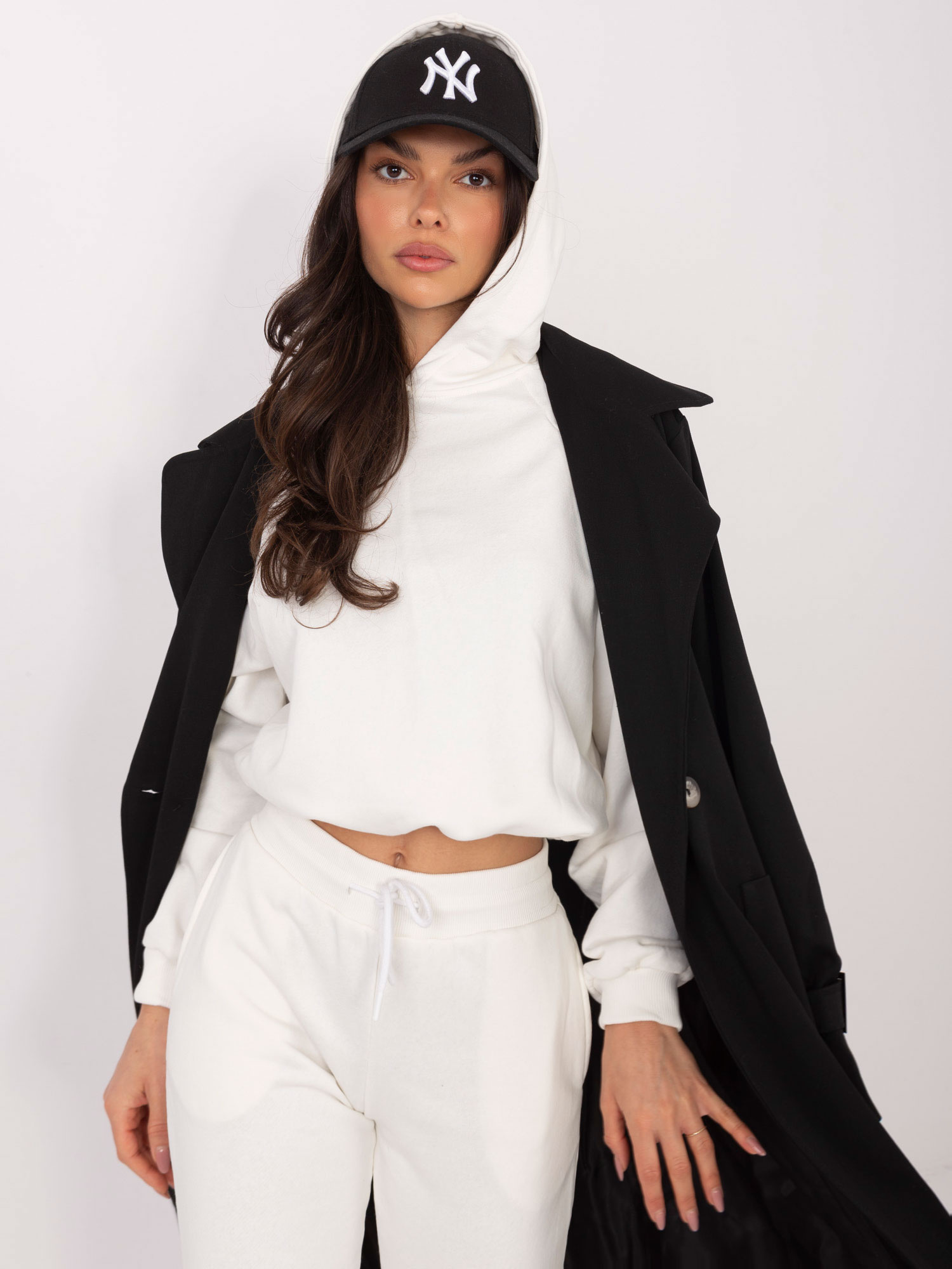 Komplet damski Adoria to wyjątkowo udane połączenie wygodnej bluzy ze spodniami dresowymi. Ten model w bardzo efektowny sposób kontrastuje ze sobą luźną górę z dopasowanym dołem. To bardzo skuteczny sposób, by zaakcentować atuty kobiecej sylwetki. Górną część kompletu stanowi luźna bluza damska z kapturem. Dolna to bawełniane joggery podkreślające smukłe nogi. W dolnej części bluza posiada modelujące troczki, które znajdziemy również przy spodniach. Nogawki dresów posiadają wykończenie w postaci ściągaczy, jak również dwie pojemne kieszenie z przodu.