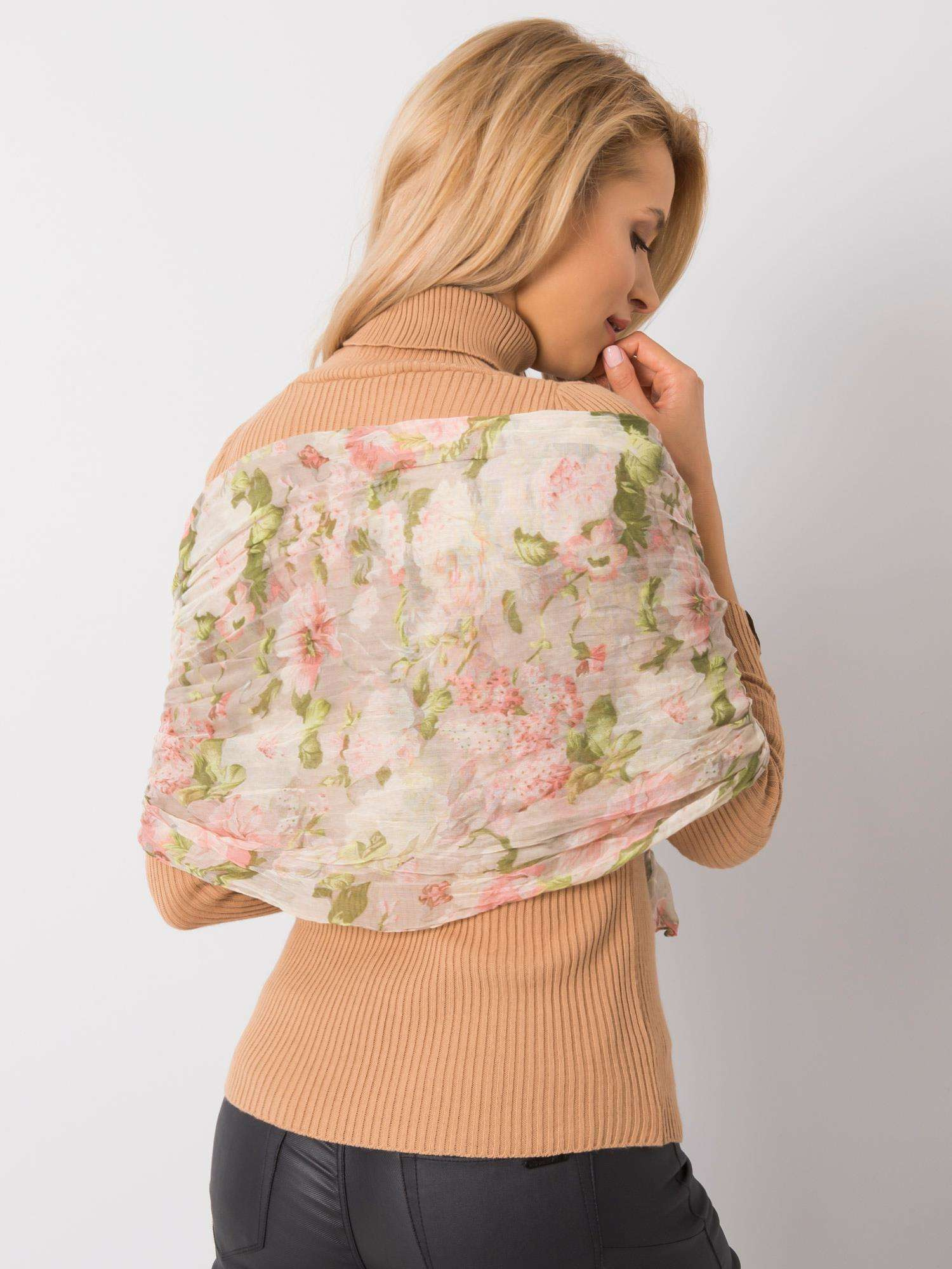 Jasnozielona chusta w kwiatowy wzór.