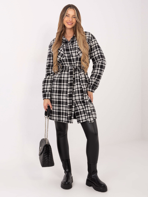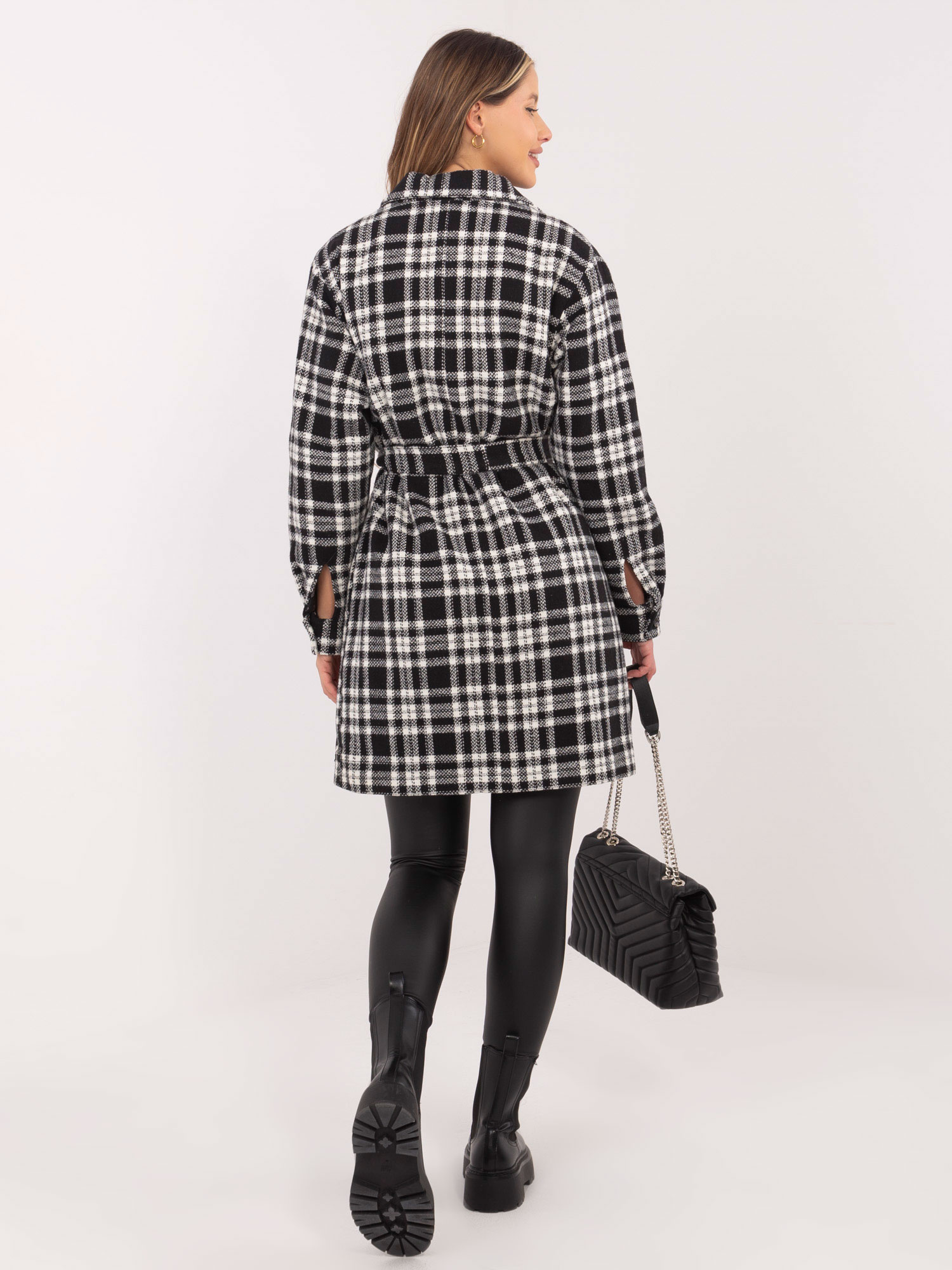 Wymiary płaszcza w rozmiarze 36 mierzone na płasko: szerokość pod pachami - 56 cm, długość całkowita - 97 cm, szerokość w biodrach - 55 cm, długość rękawa - 64 cm.