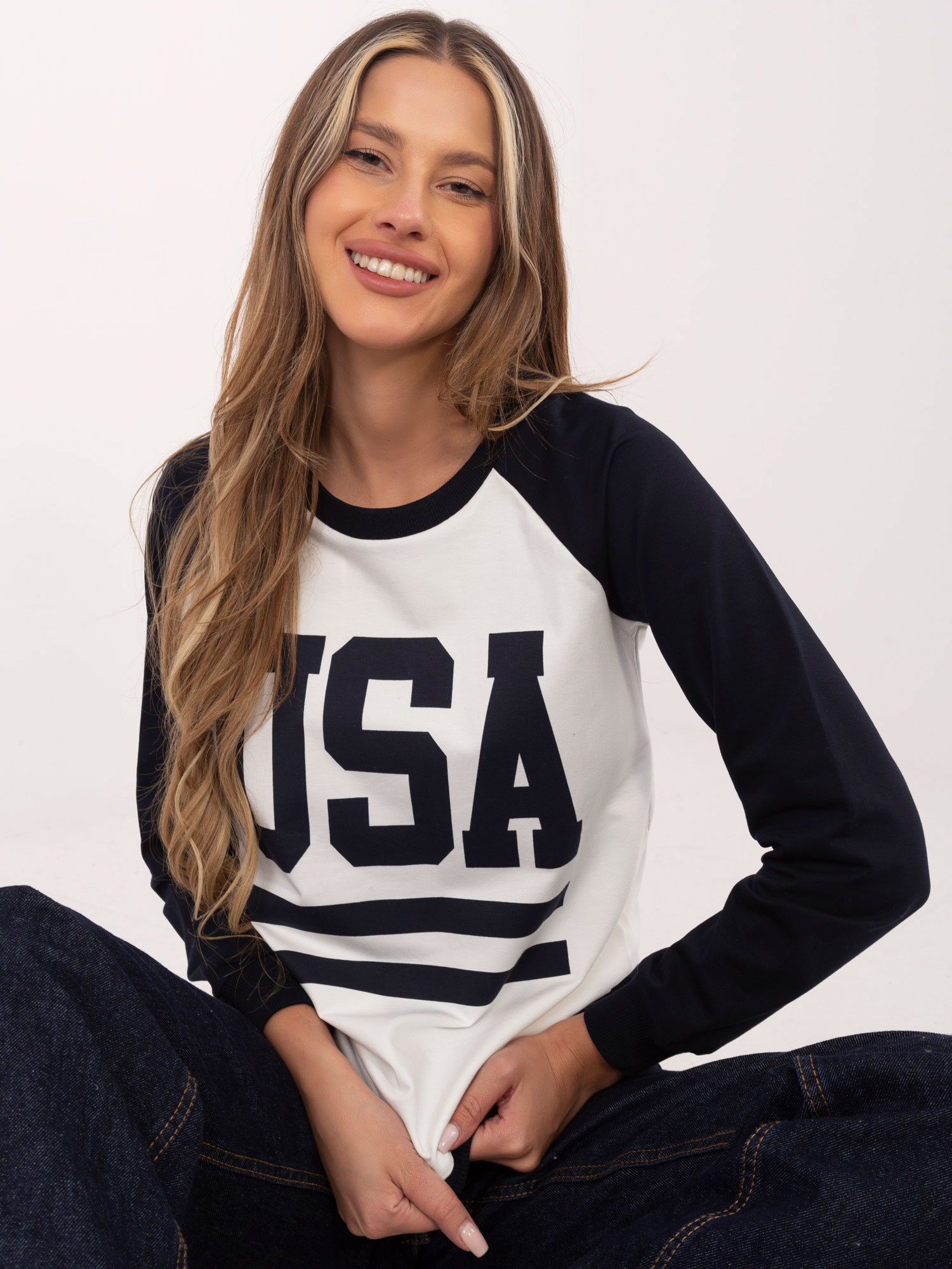 Opinie o Biało-granatowa bluza z nadrukiem Samantha RUE PARIS