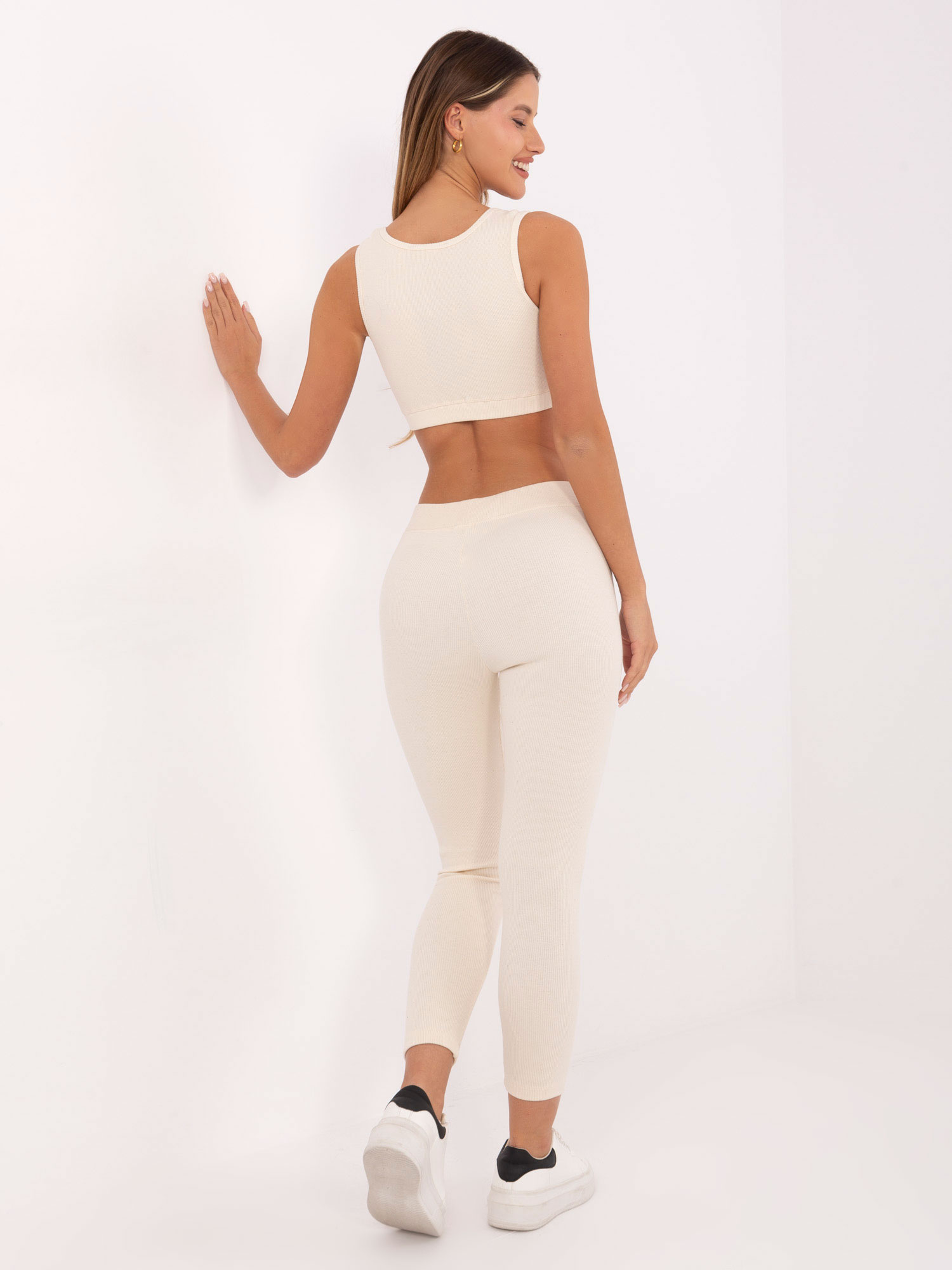 Ecru prążkowany komplet sportowy FOR FITNESS .