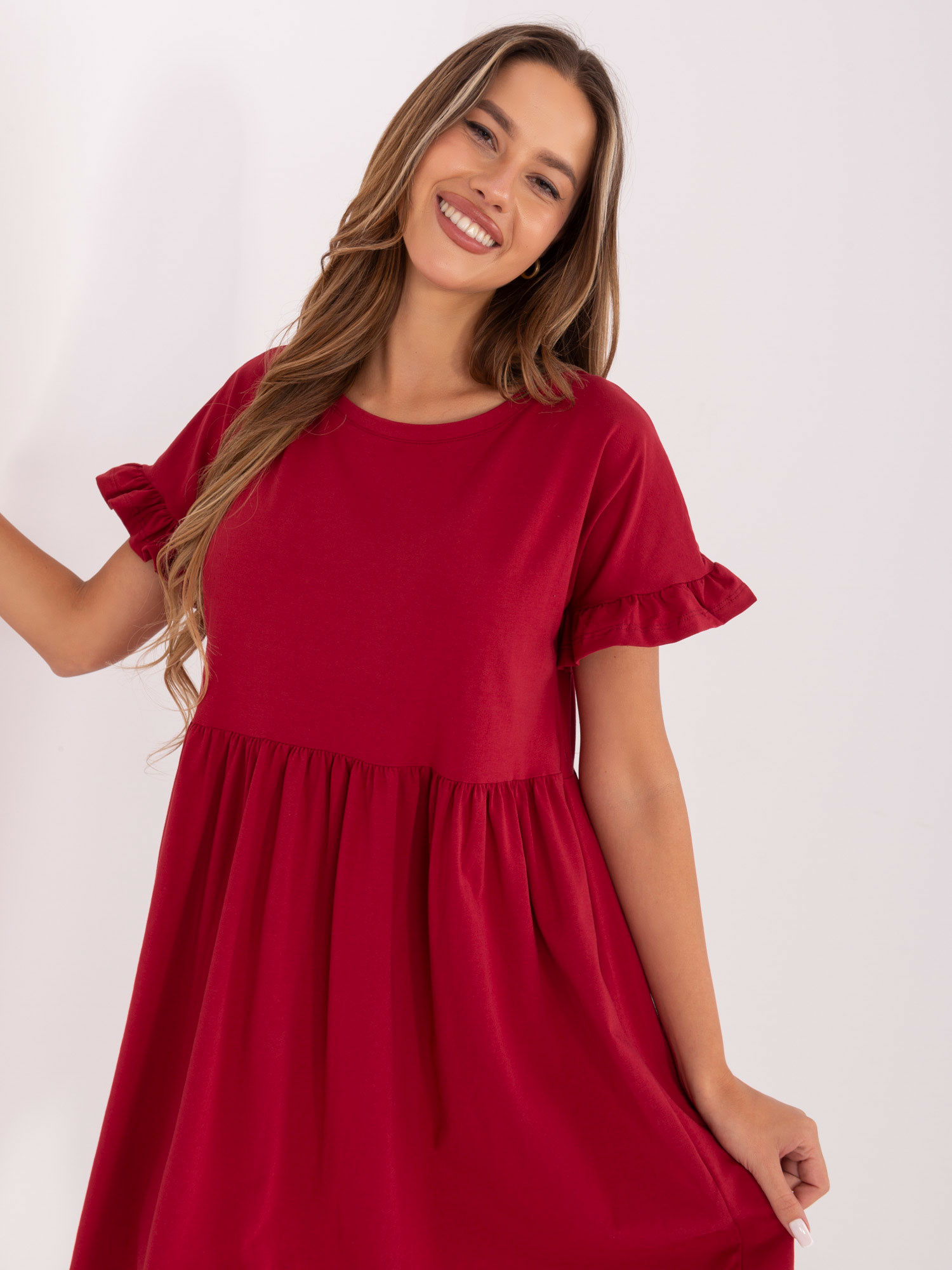 Bordowa rozkloszowana sukienka basic RUE PARIS .