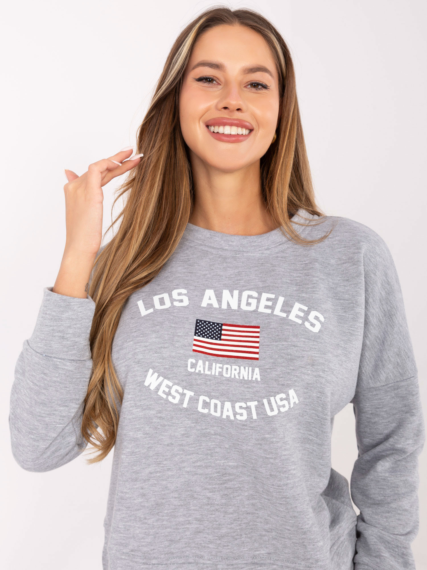 Opinie o Szara melanżowa bluza z printem RUE PARIS