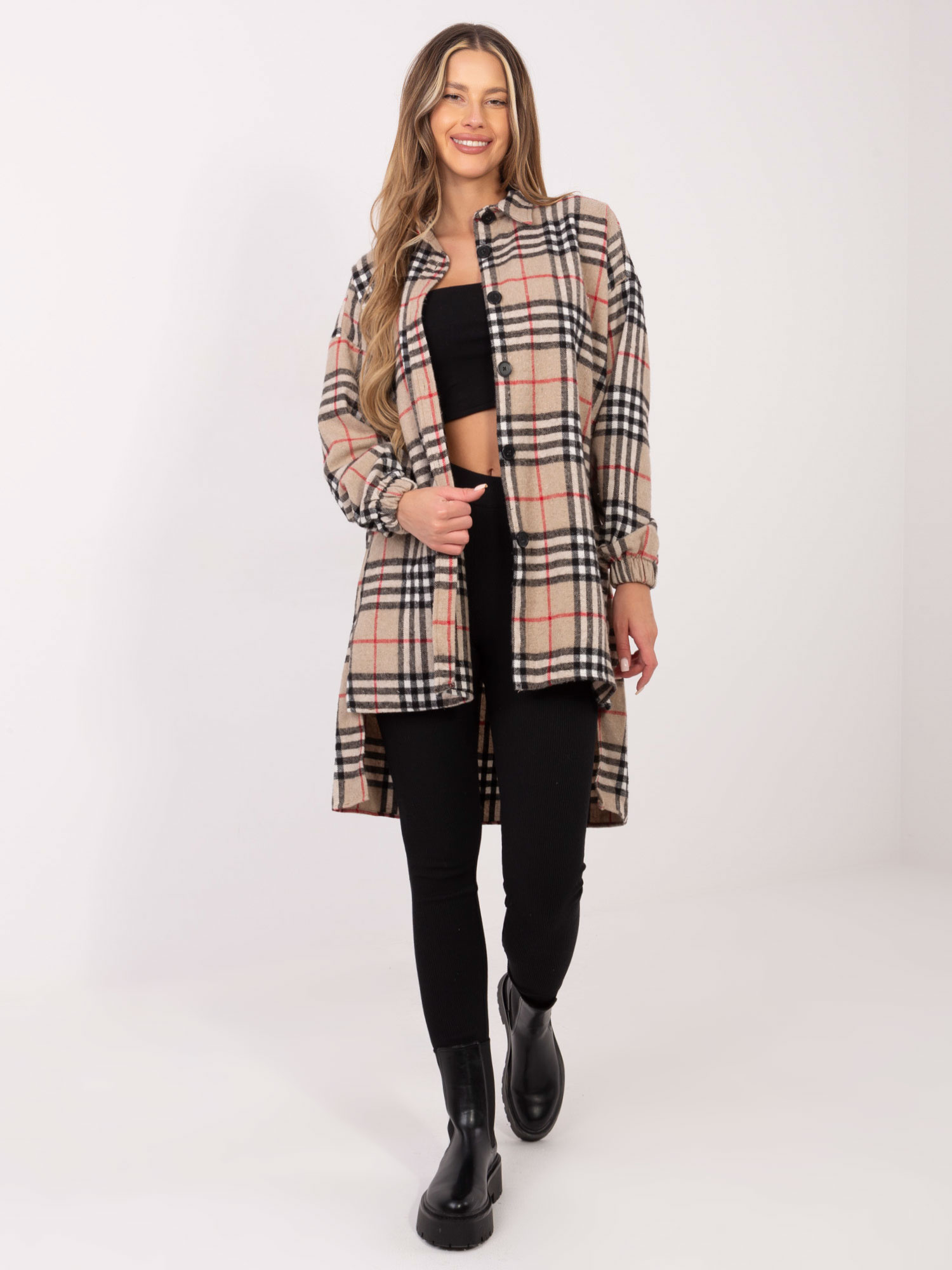 Beżowo-czarna asymetryczna koszula w kratę Bonnie.