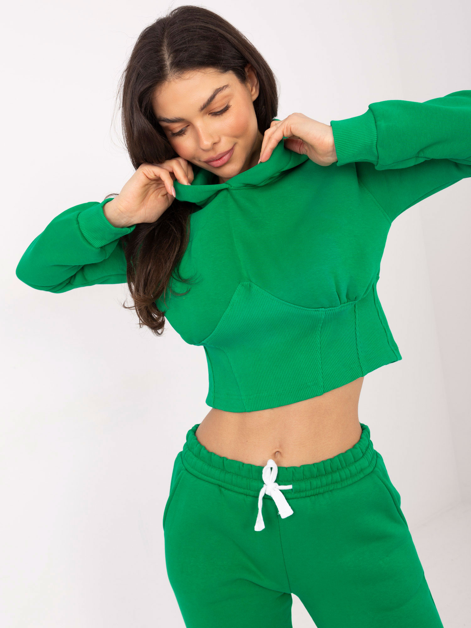 Wymiary kompletu w rozmiarze S/M mierzone na płasko: szerokość bluzy pod pachami - 50 cm, długość rękawa - 61 cm, długość bluzy - 44 cm, szerokość na dole - 38 cm, szerokość spodni w pasie - 32 cm, szerokość w biodrach - 52 cm, długość spodni - 91 cm.