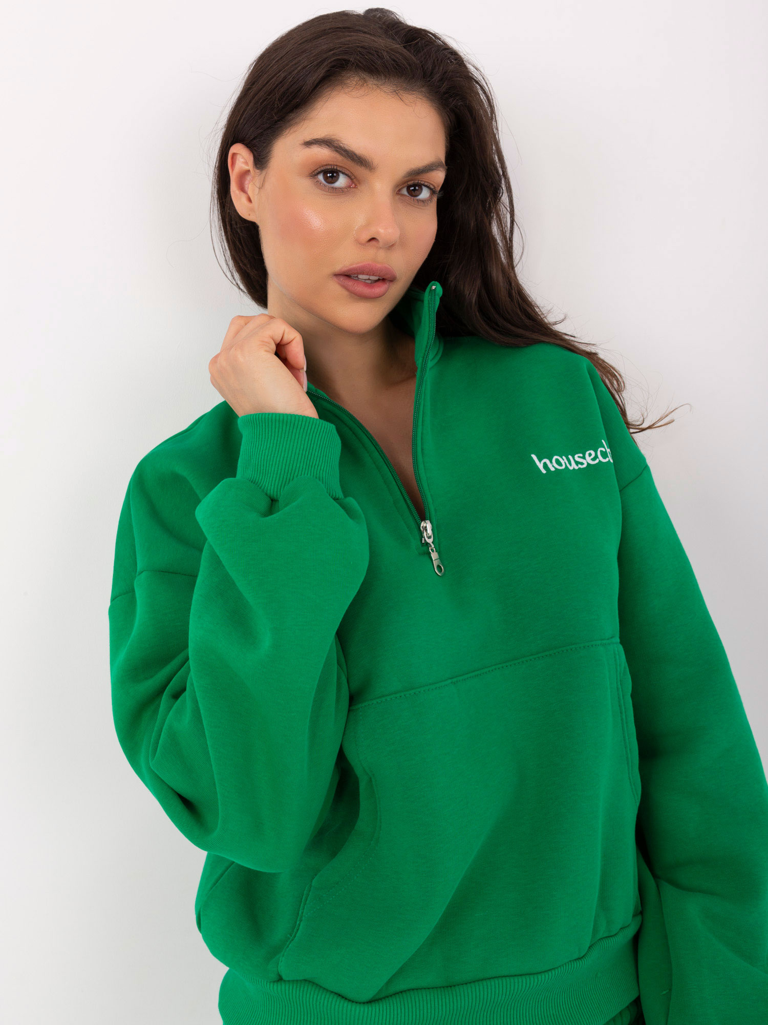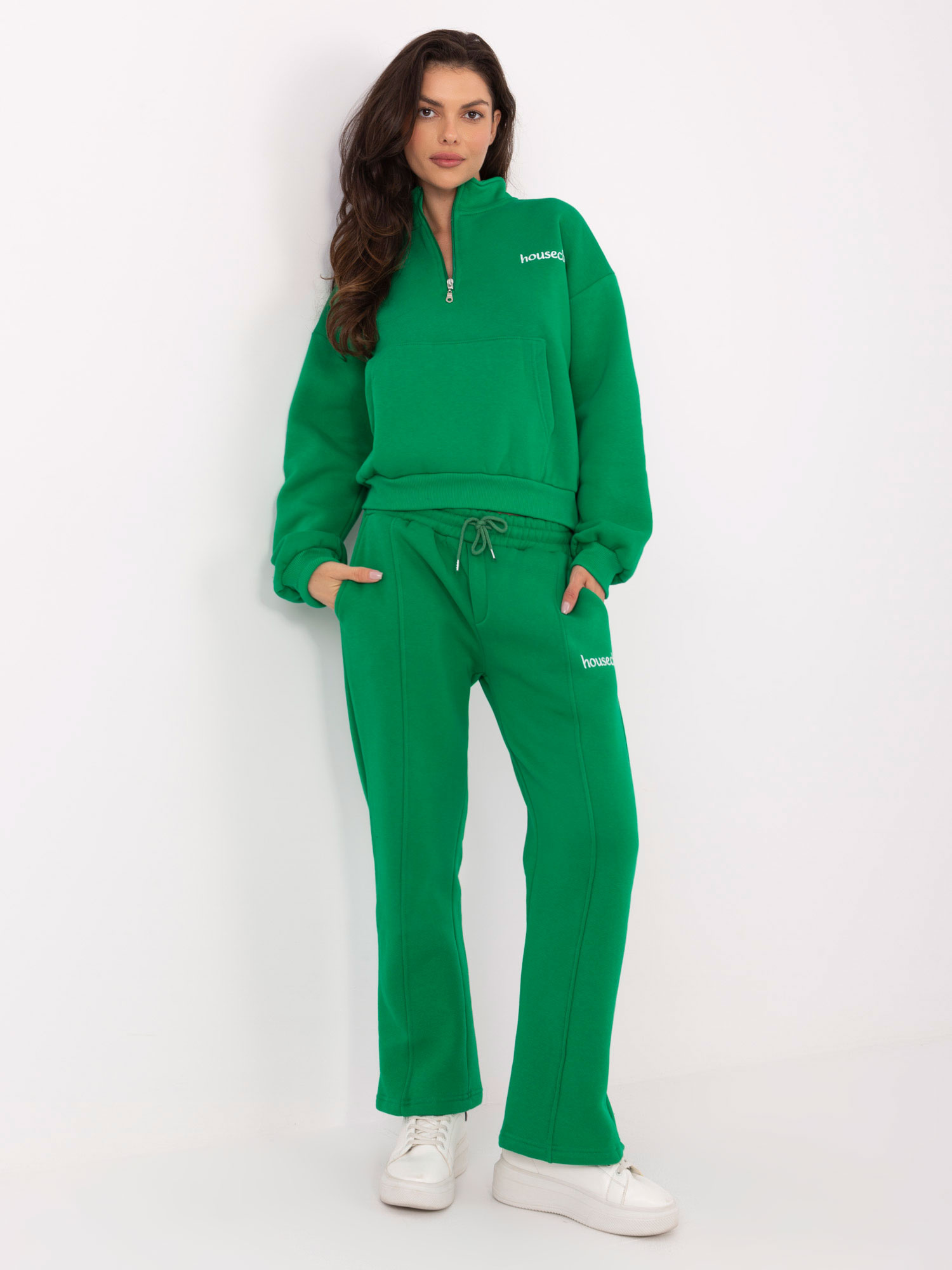 Zielony ocieplany komplet z bluzą kangurką .