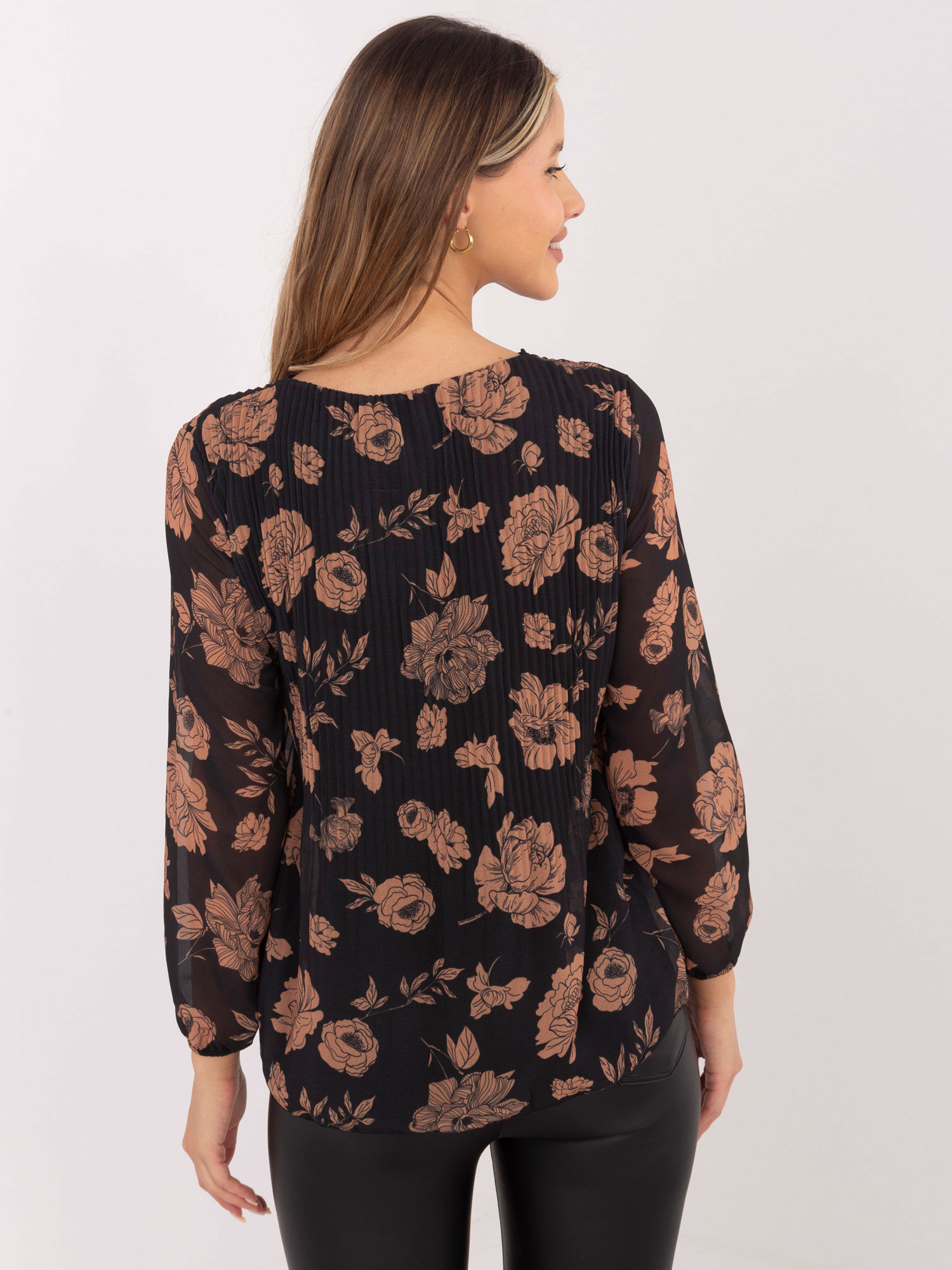 Czarna i camelowa bluzka Liana to świetny pomysł na elegancki look. Wyprodukowana z najlepszej jakości materiału składającego się z 50% poliestru, 45% wiskozy oraz 5% elastanu, gwarantuje maksymalny komfort noszenia przez cały dzień. Bluzka ma ciekawy wzór kwiatów i jest idealna do noszenia na co dzień, do pracy oraz na miasto. Modelka ma na sobie rozmiar one size. Wymiary produktu mierzone na płasko: szerokość pod pachami - 47 cm, długość całkowita - 67 cm, długość rękawa - 54 cm. Pranie w pralce w 30°C. Kod produktu: DHJ-BZ-8643-1.37P.