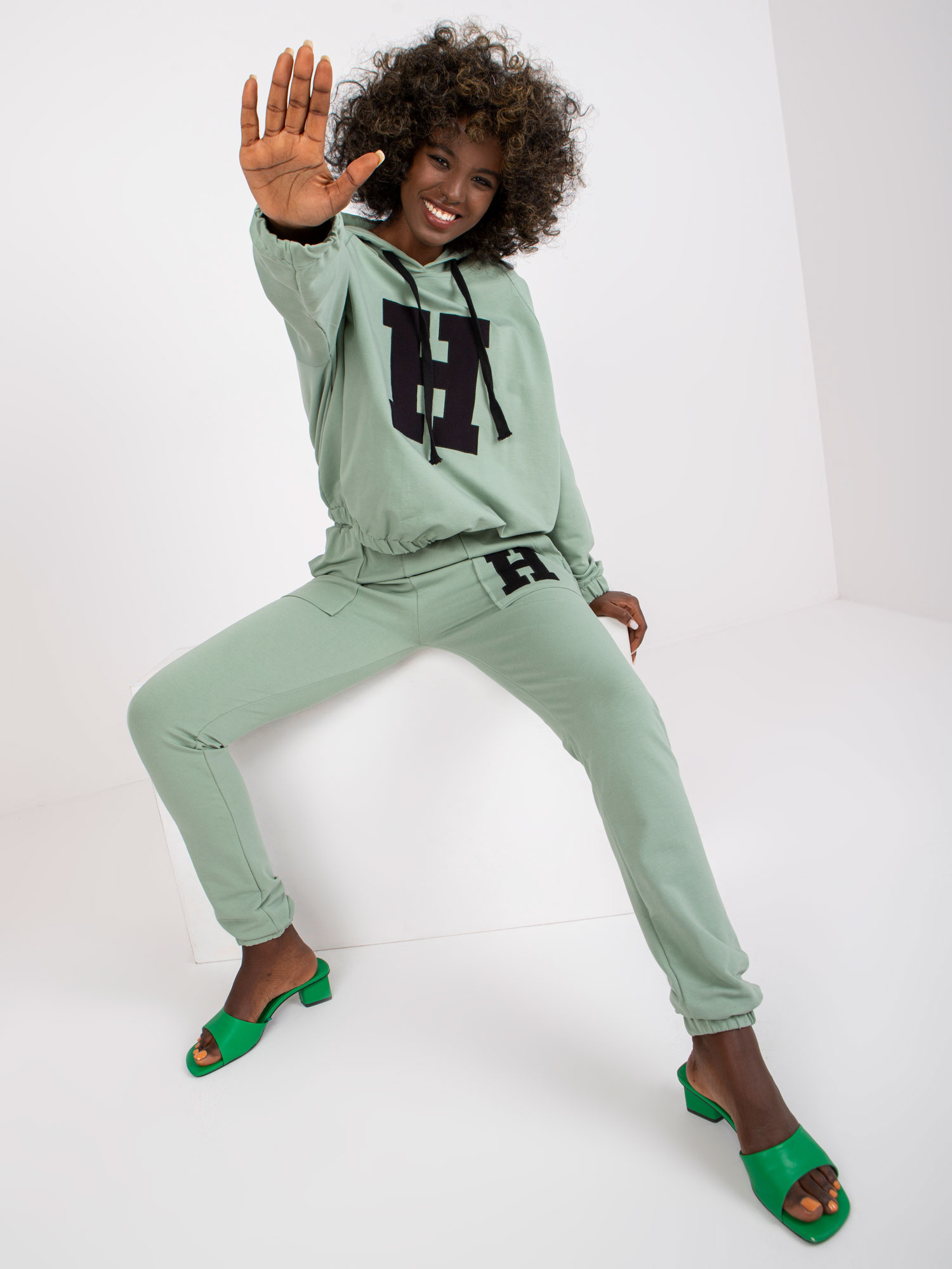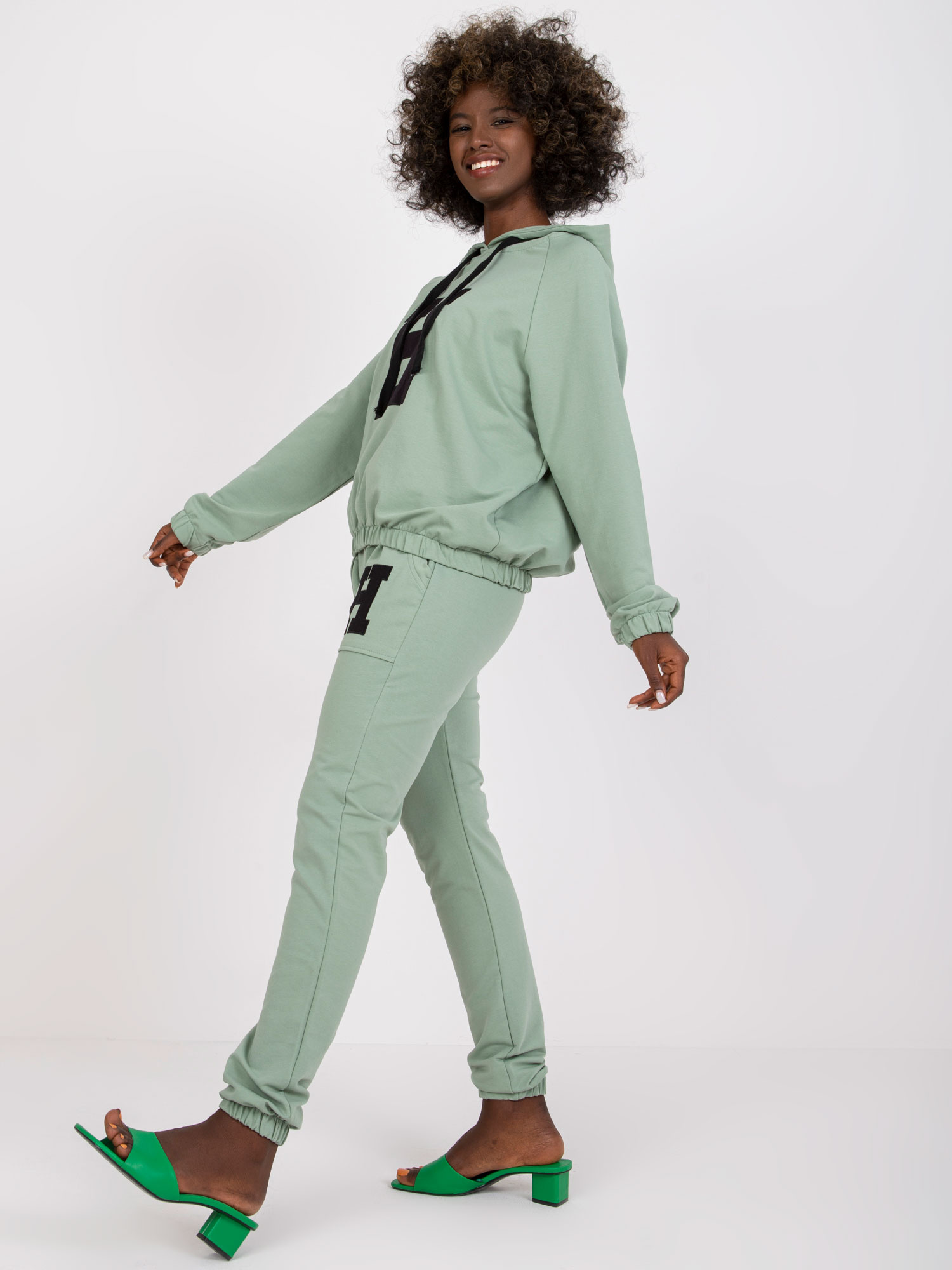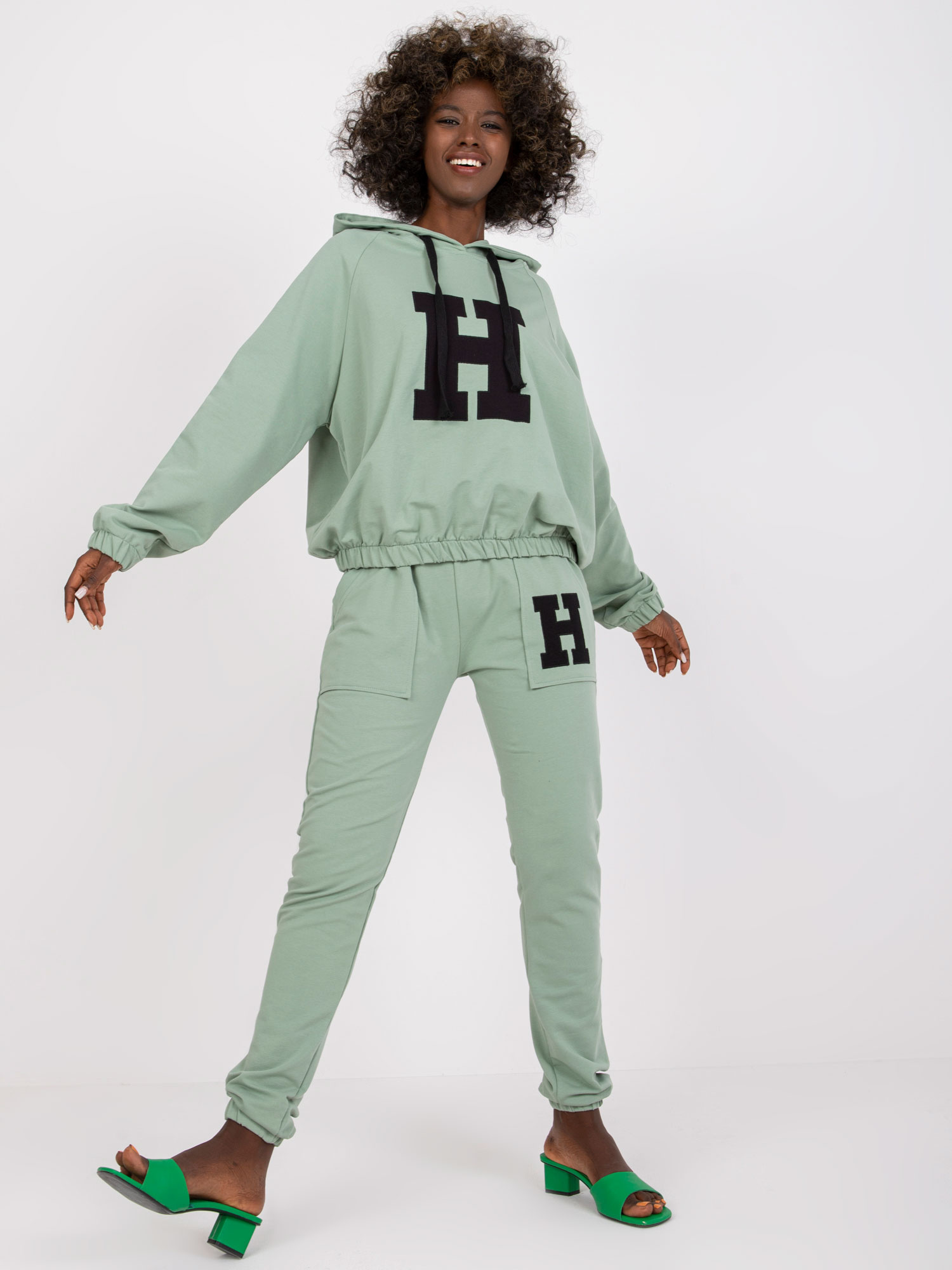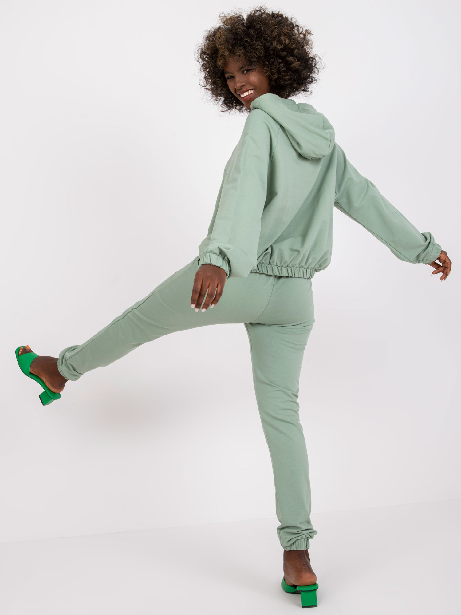 Przepiękny dwuczęściowy pistacjowy komplet dresowy ze spodniami Natela to świetna propozycja dla osób, które lubią wygodny styl casual. Skład materiału to 90% bawełna i 10% elastan, co sprawia, że jest on miękki i komfortowy w noszeniu. Zestaw składa się z bluzy oraz spodni Natela, dzięki czemu stworzysz modny, a jednocześnie wygodny look na każdą okoliczność. Dodatkowo produkt został wyposażony w kod produktu RV-KMPL-7802.34P. Wymiary prezentowanego kompletu w rozmiarze S/M (modelka ma na sobie rozmiar S/M): szerokość bluzy pod pachami - 64 cm, długość rękawa - 61 cm, długość bluzy - 54 cm, szerokość spodni w pasie - 35 cm, długość spodni - 99 cm. Pranie w pralce w temp. do 30°C. Ubranie dedykowane jest na co dzień, na miasto, na spacer. Połącz pistacjowy dwuczęściowy komplet dresowy ze spodniami Natela z najmodniejszymi dodatkami i ciesz się codziennym stylem!