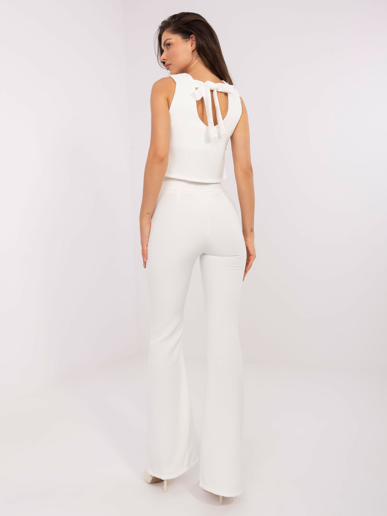 Wymiary kompletu w rozmiarze S mierzone na płasko: szerokość topu pod pachami - 44 cm, długość topu - 43 cm, szerokość spodni w pasie - 33 cm, wysokość stanu - 33 cm, długość spodni - 113 cm.