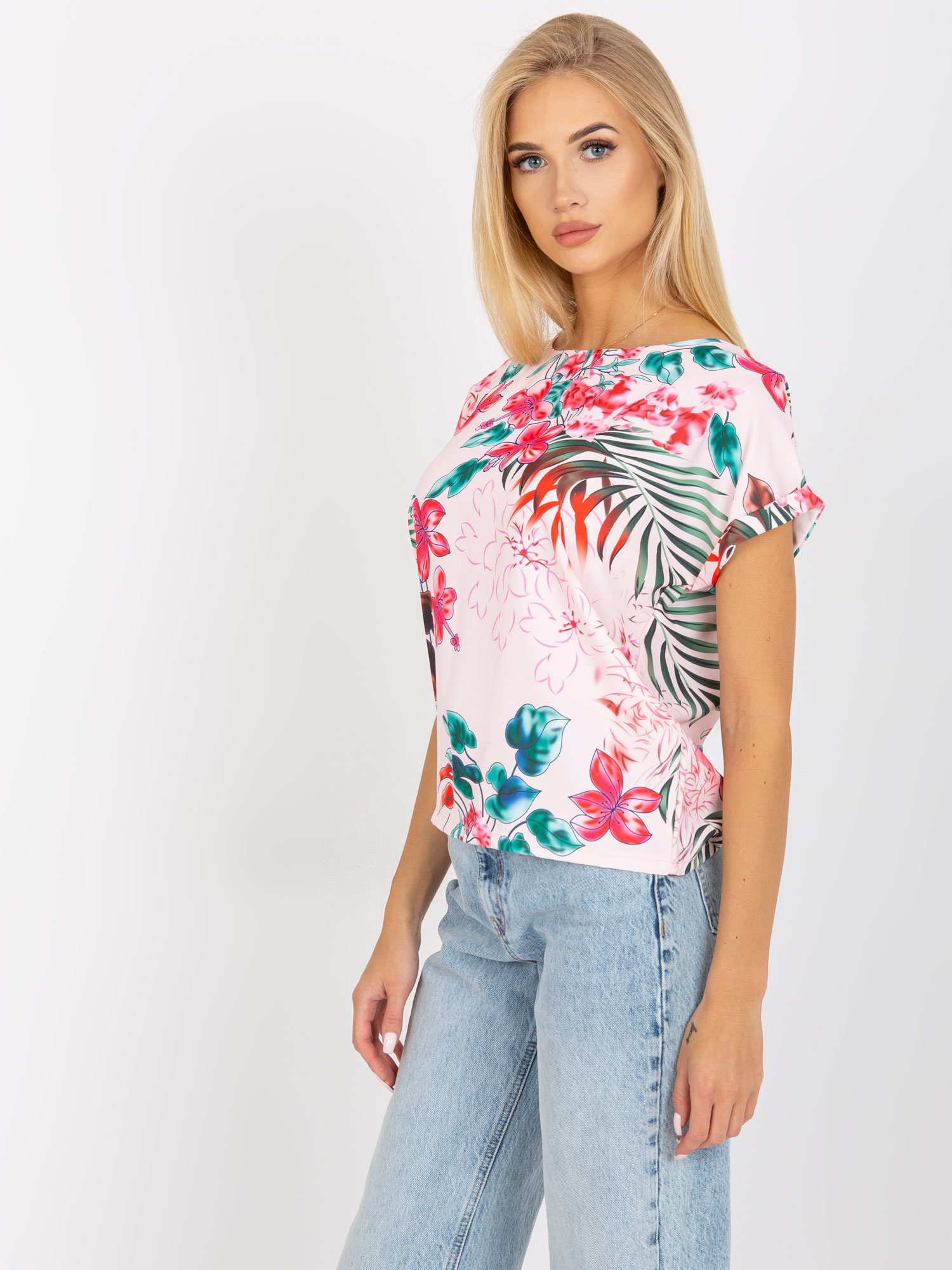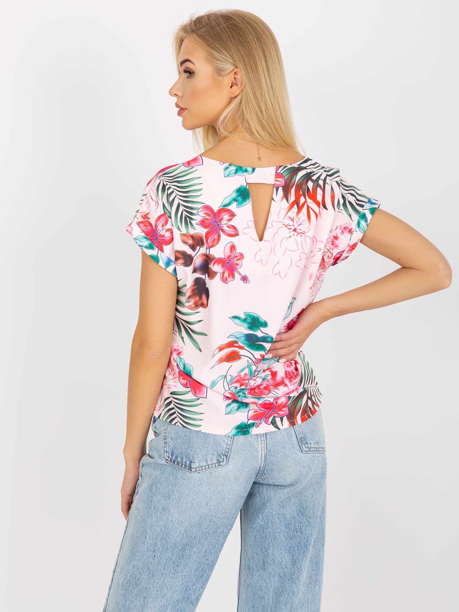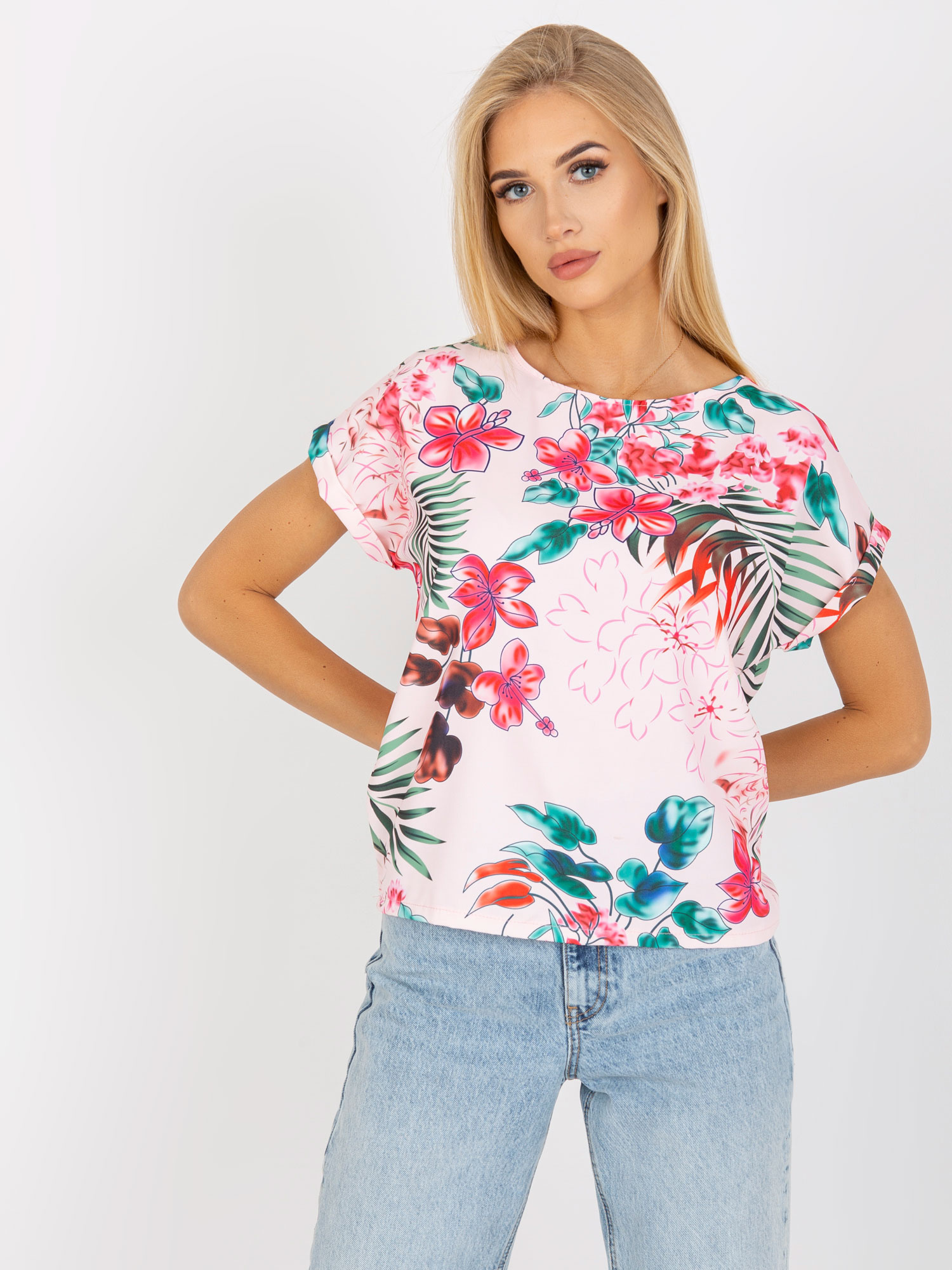 Opinie o Jasnoróżowa bluzka z letnim wzorem RUE PARIS