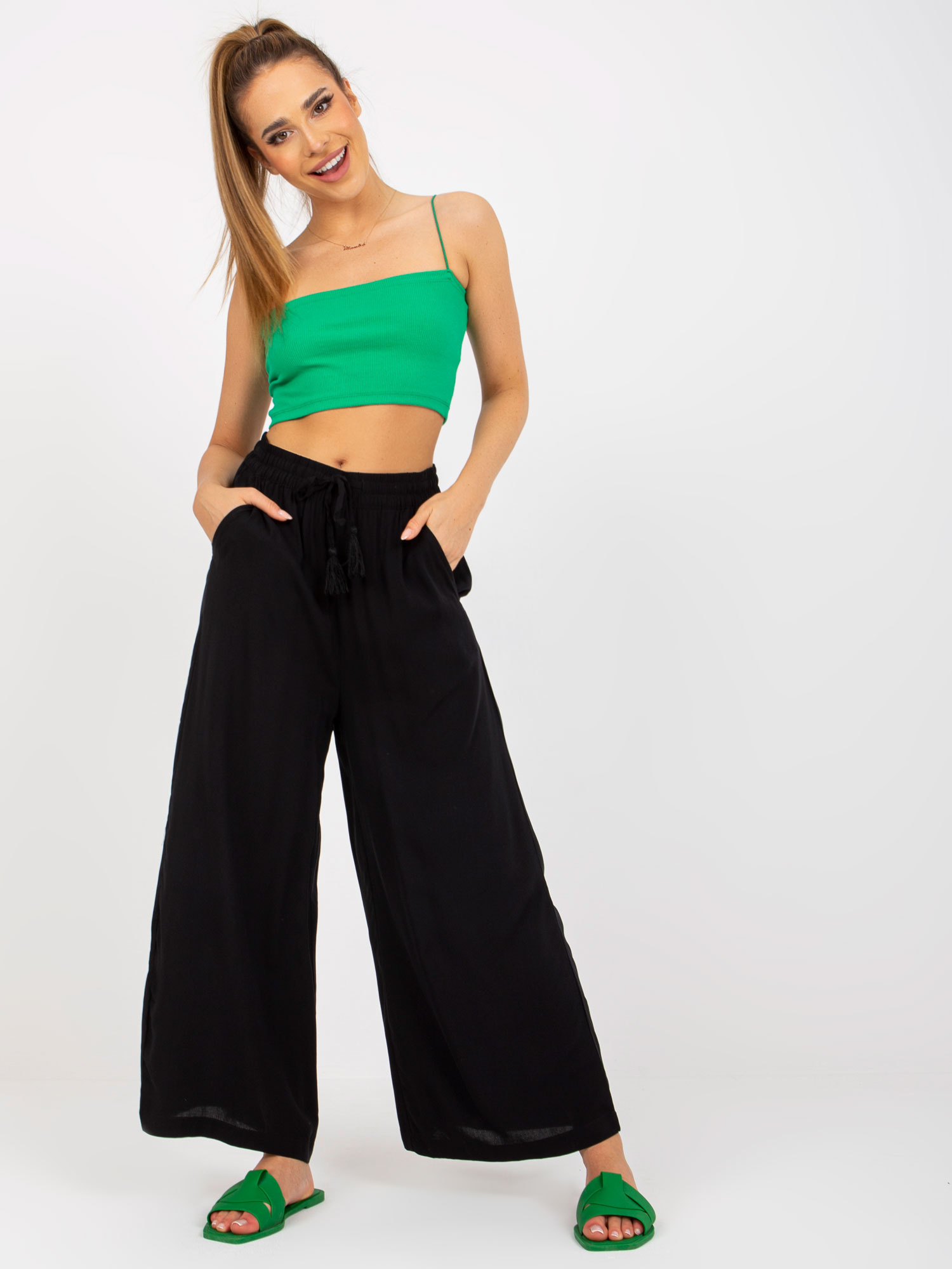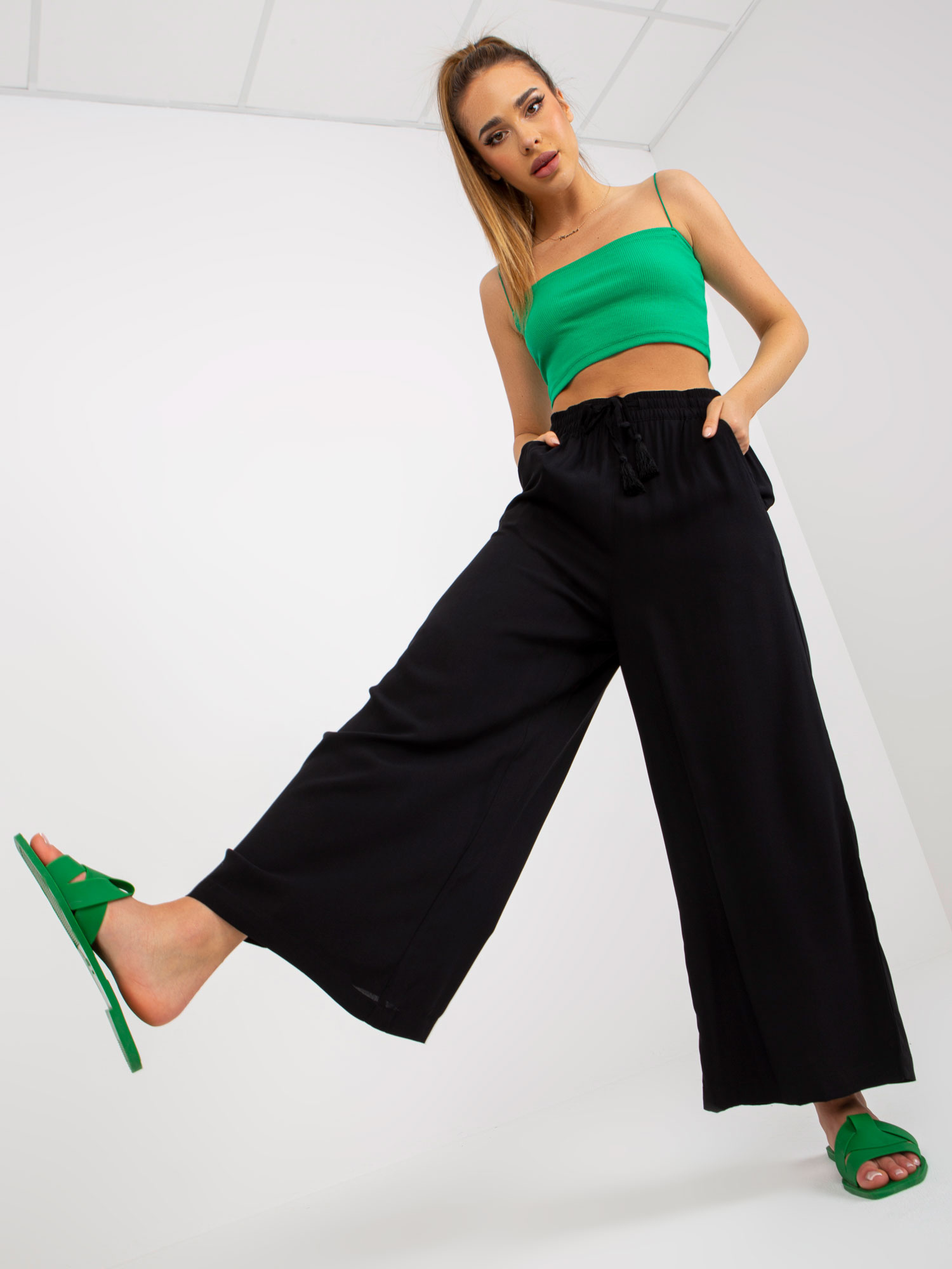 Hurtownia Czarne spodnie z materiału z szeroką nogawką SUBLEVEL .