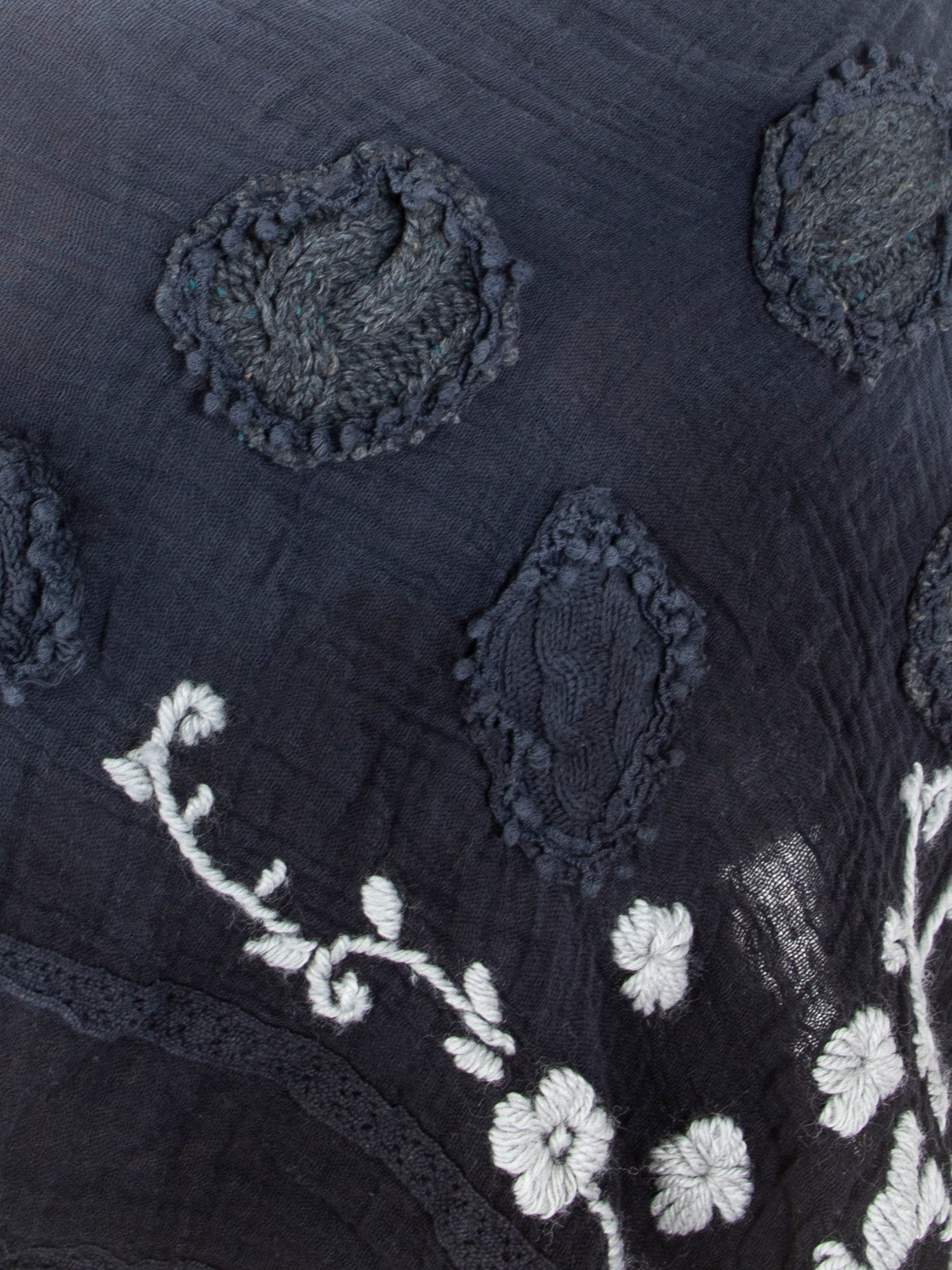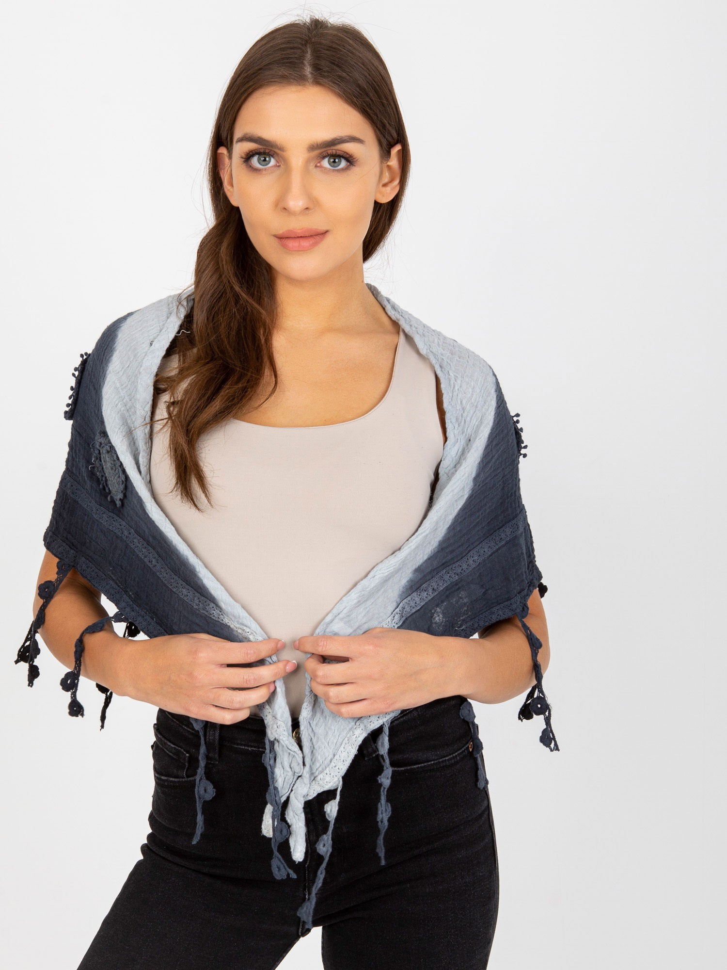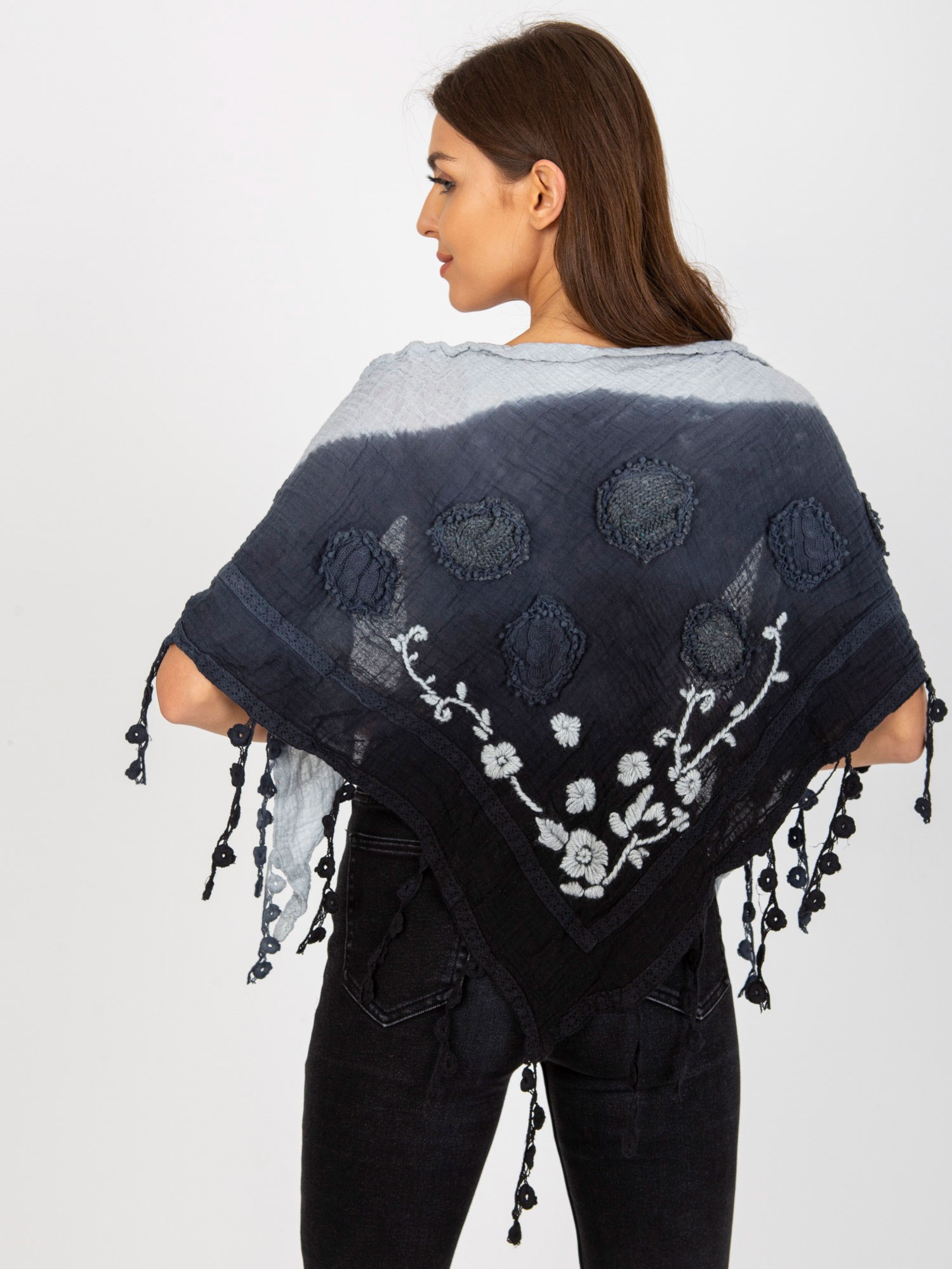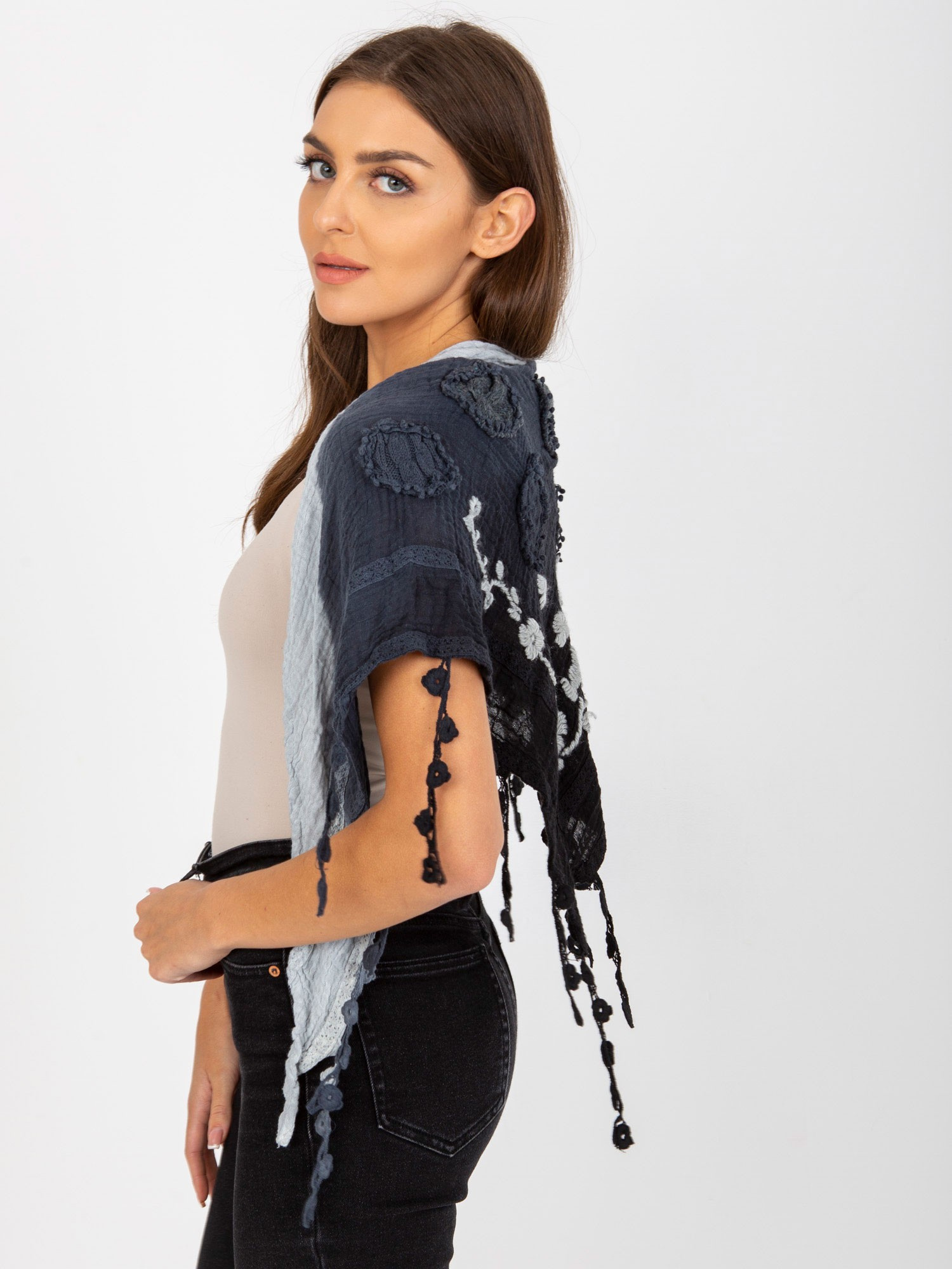 Hurt Granatowa muślinowa chusta z ozdobnym wykończeniem .