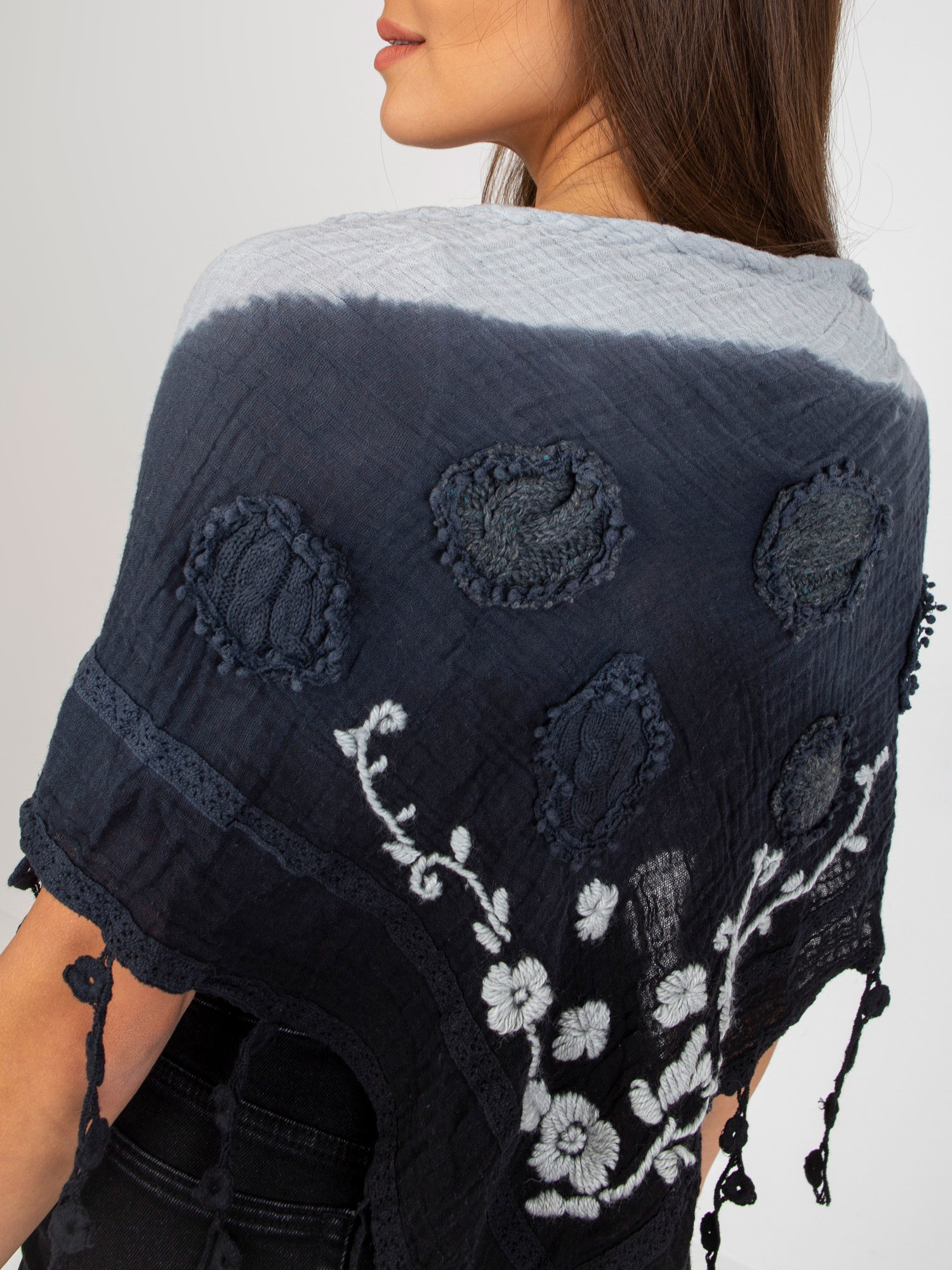 Opinie o Hurt Granatowa muślinowa chusta z ozdobnym wykończeniem