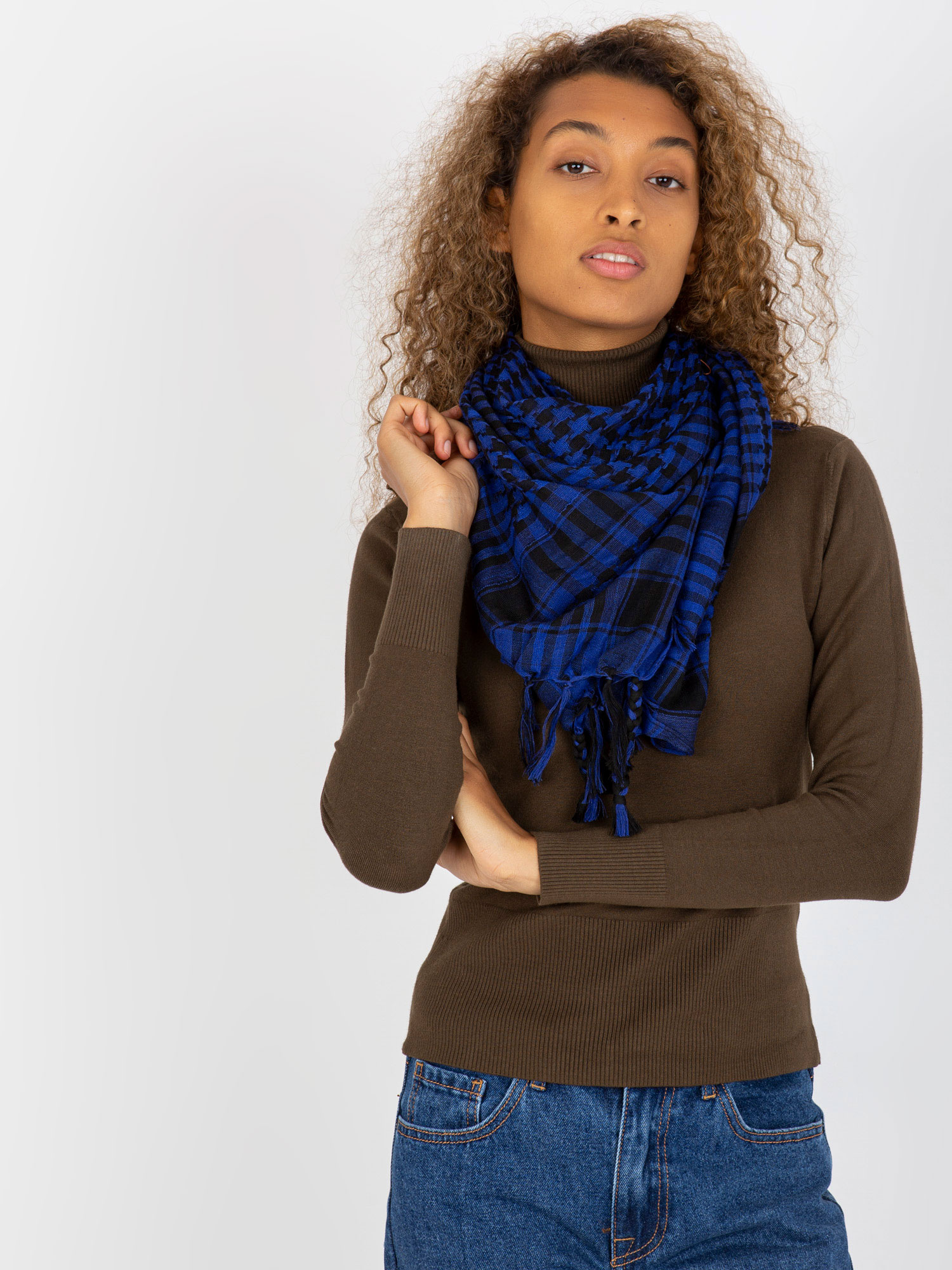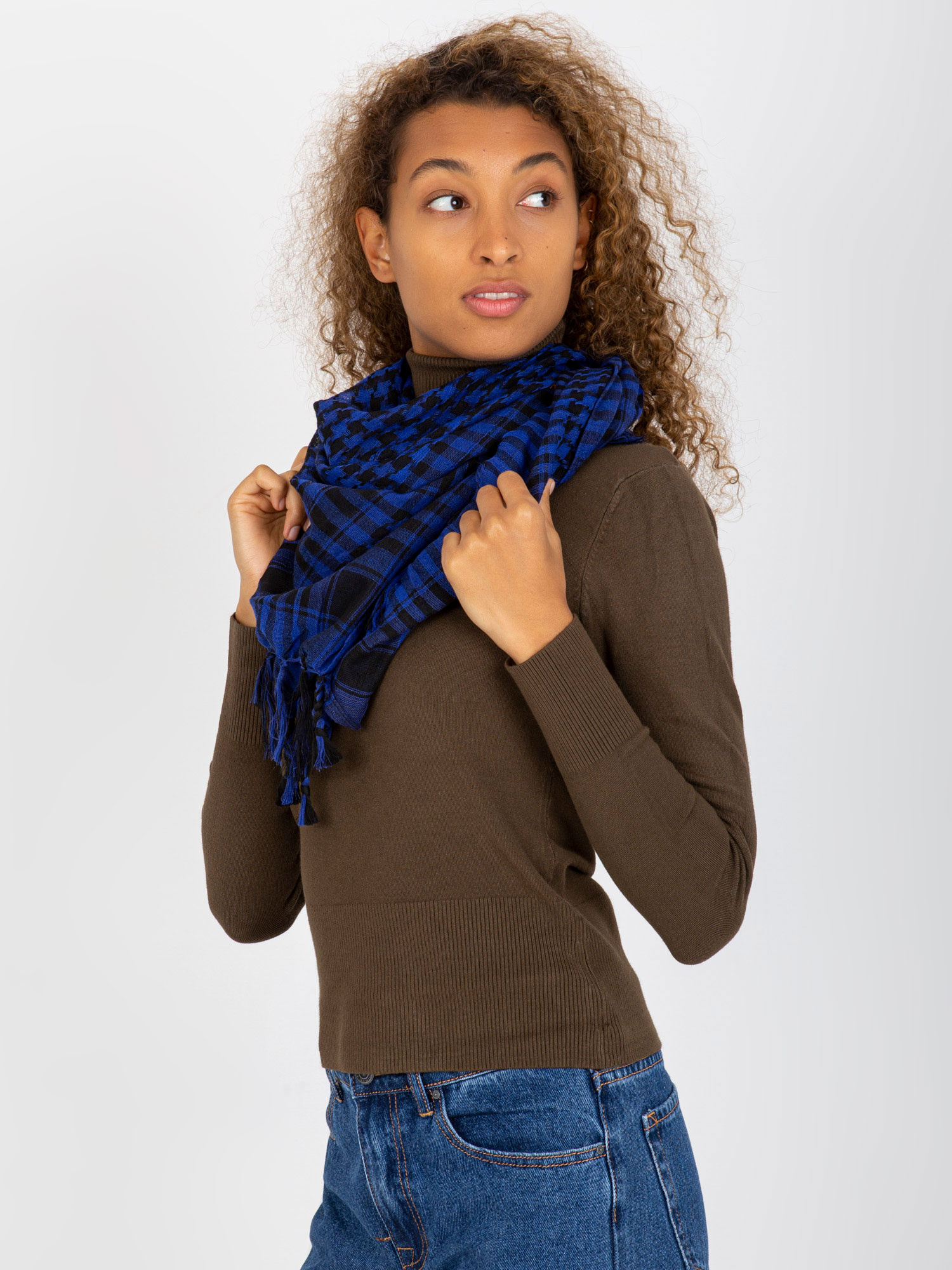 Hurtownia Kobaltowo-czarna chusta arafatka z frędzlami .