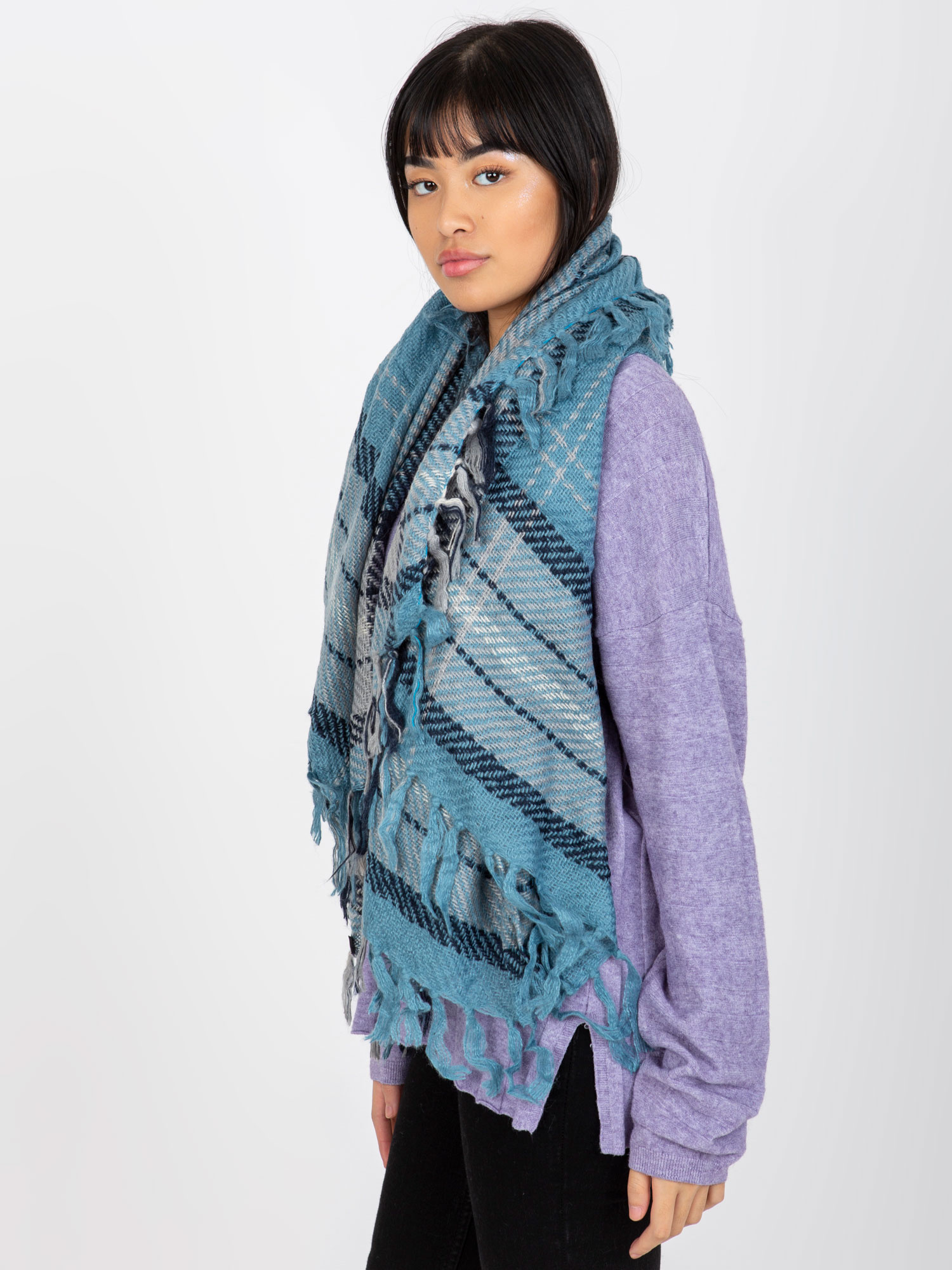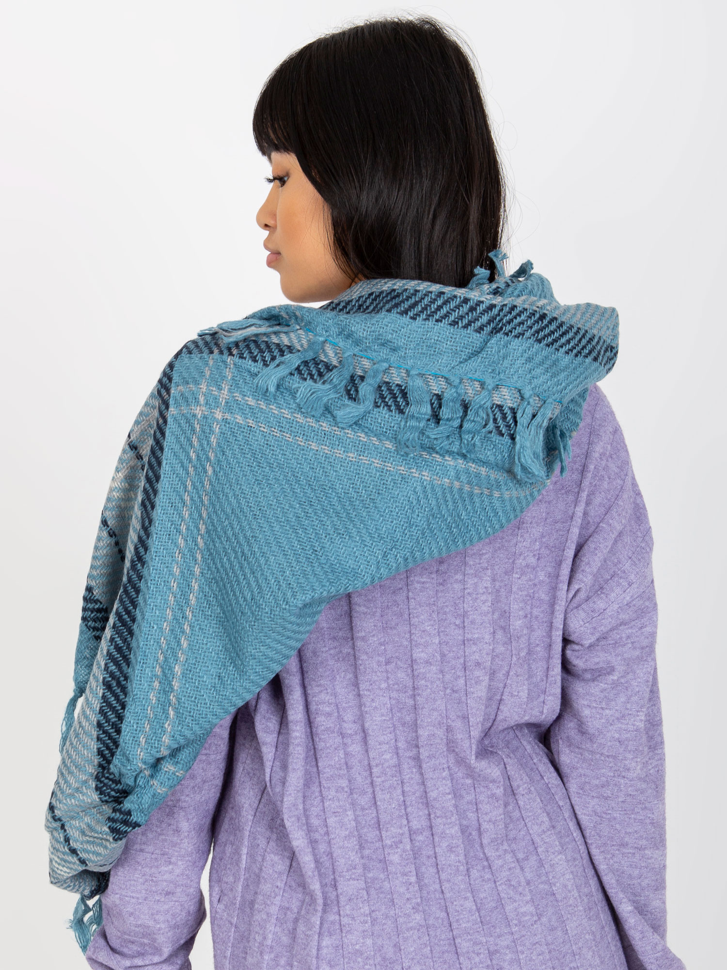 Hurtownia online Niebieski szalik damski z frędzlami .