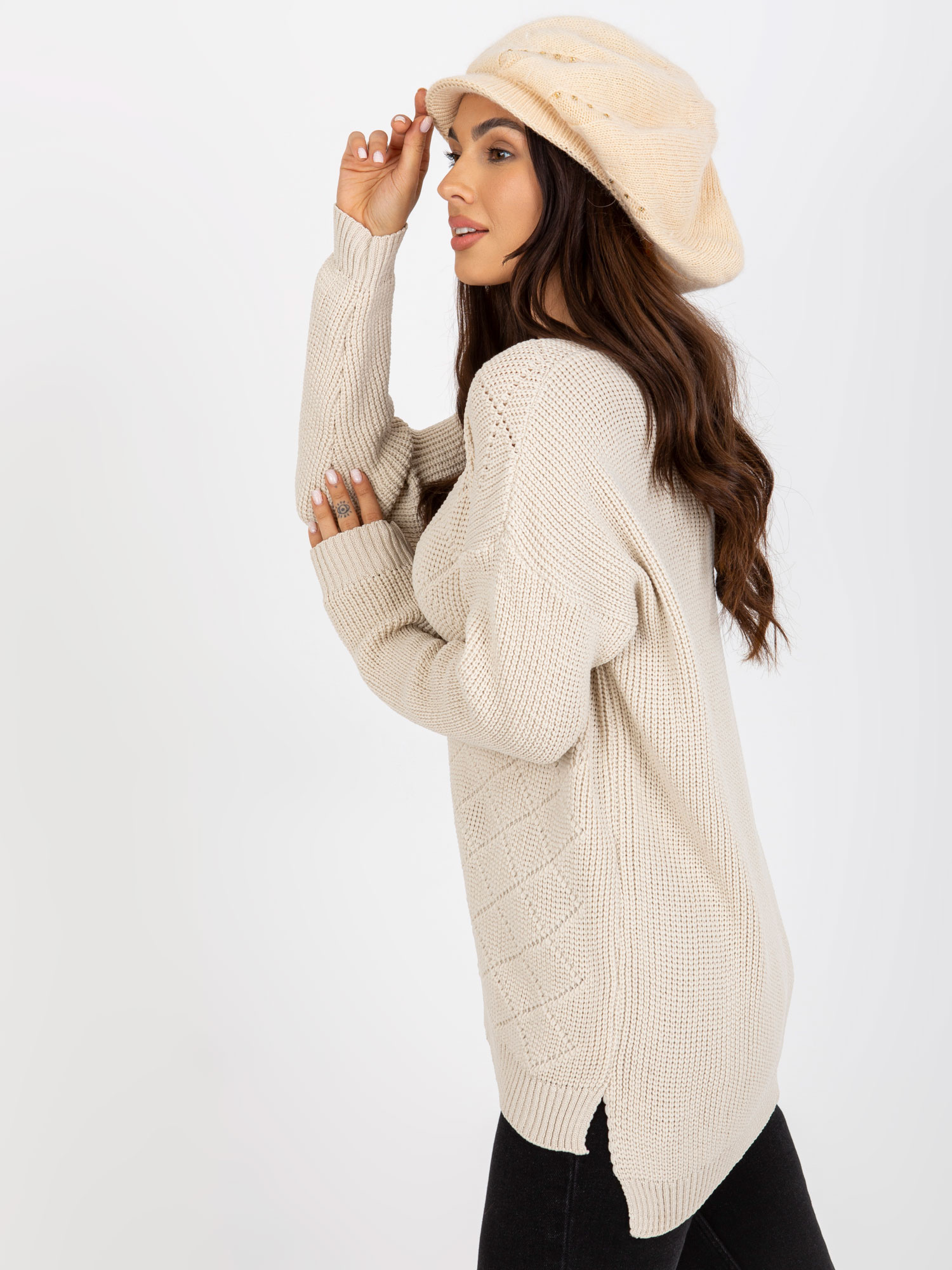 Hurtownia Jasnobeżowa damska czapka zimowa z daszkiem