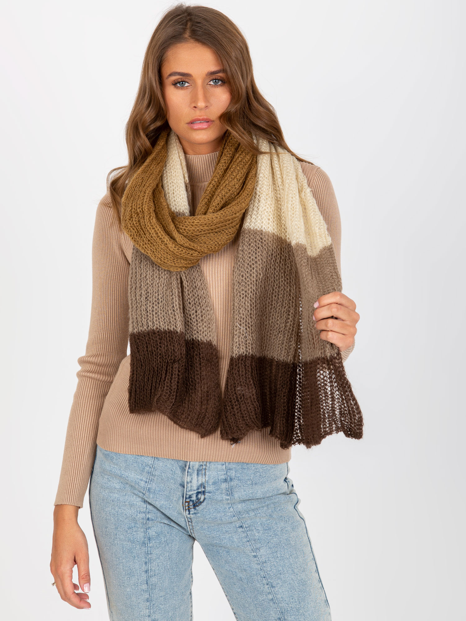 Hurt Brązowo-beżowy damski szal zimowy z dzianiny