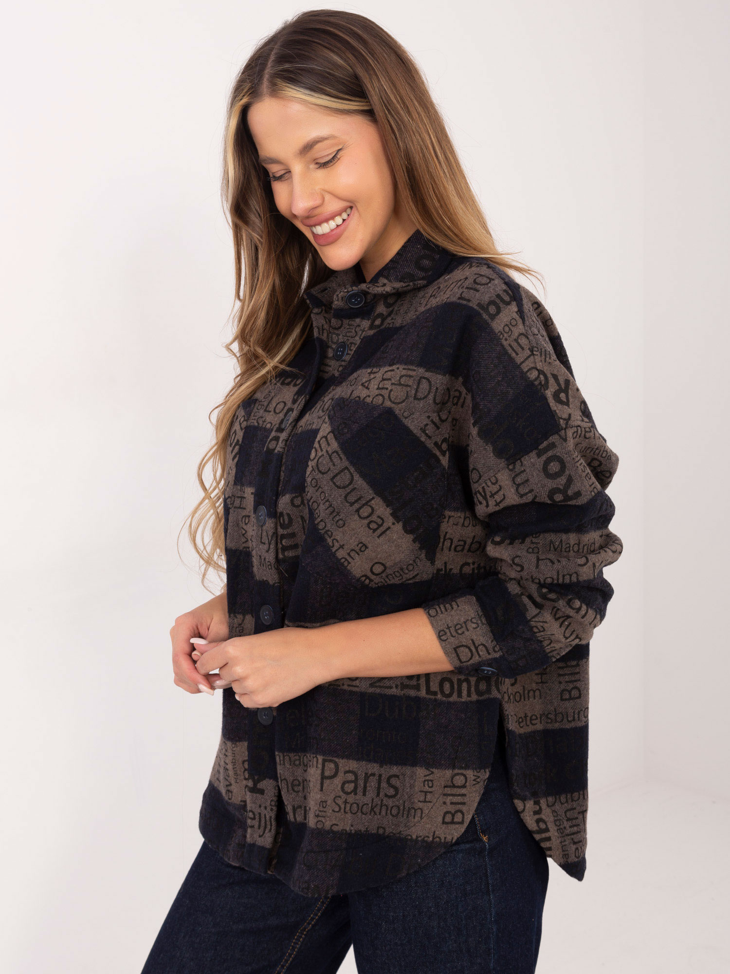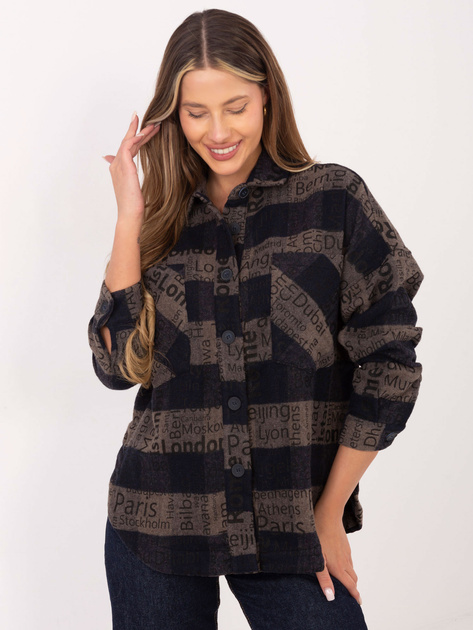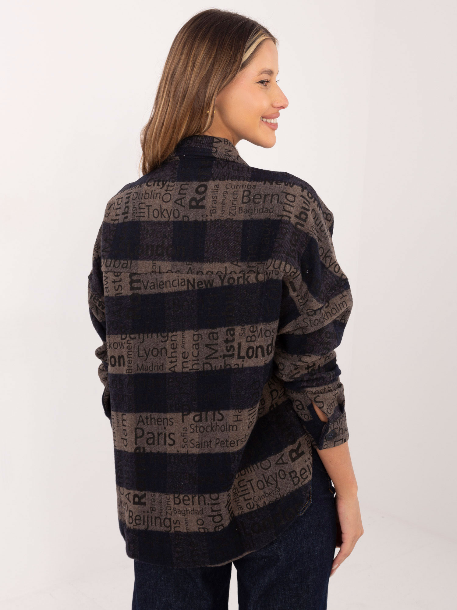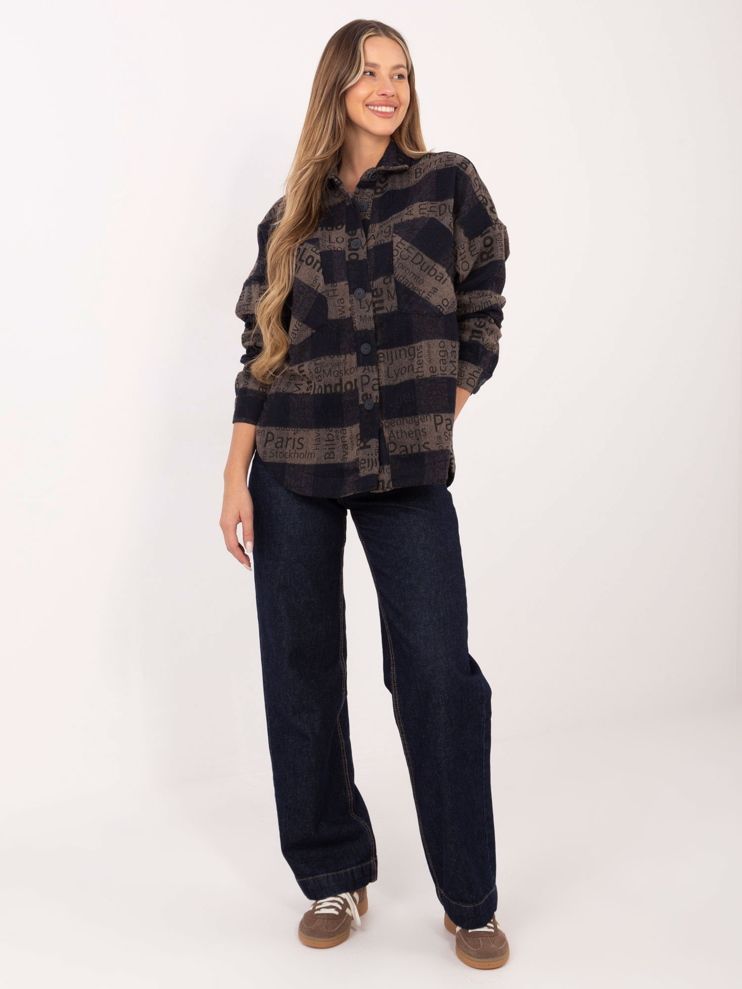 Opinie o Hurt Granatowo-ciemnoszara wierzchnia koszula w kratę z kieszeniami