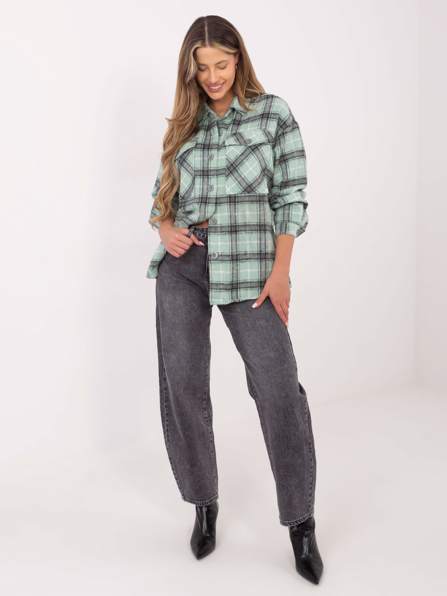 Hurt Miętowa wierzchnia koszula w kratę na guziki.