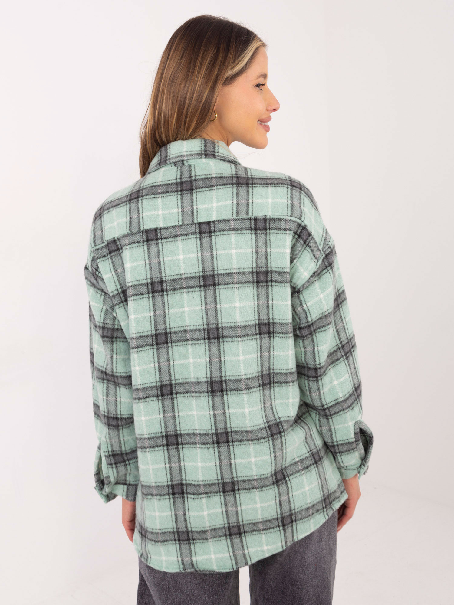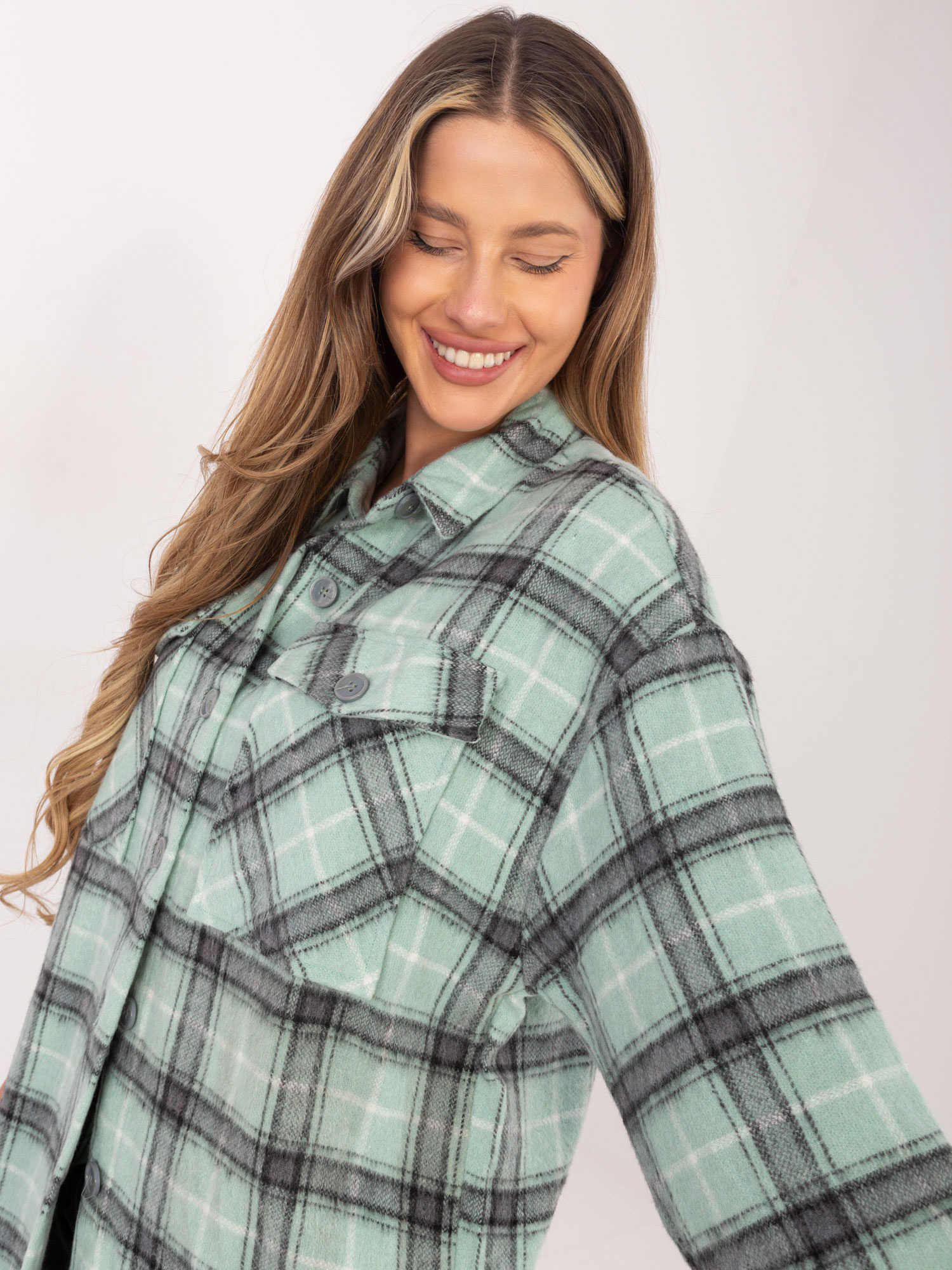 Hurt Miętowa wierzchnia koszula w kratę na guziki