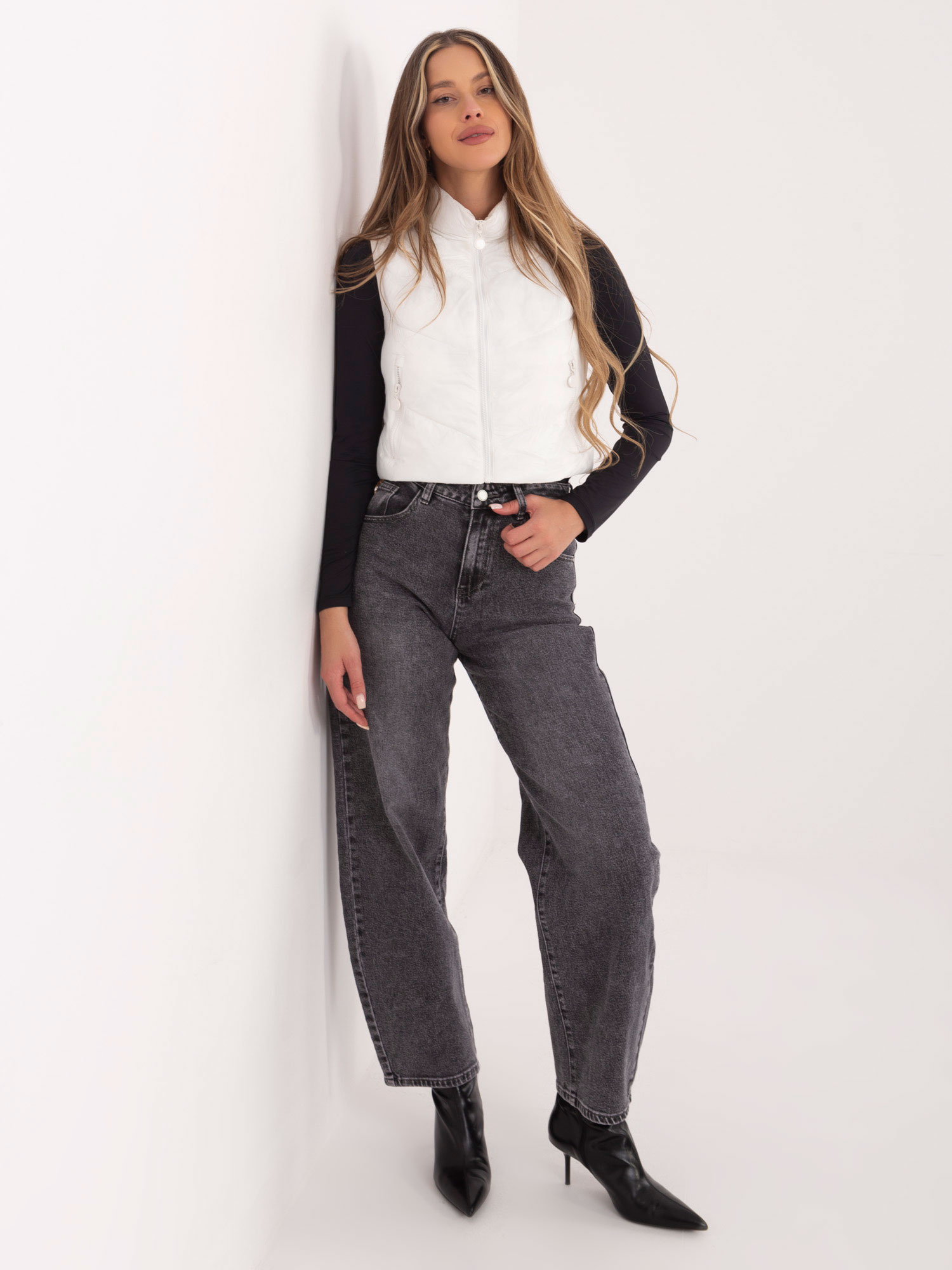 Hurtownia Ecru krótka kamizelka pikowana z kieszeniami
