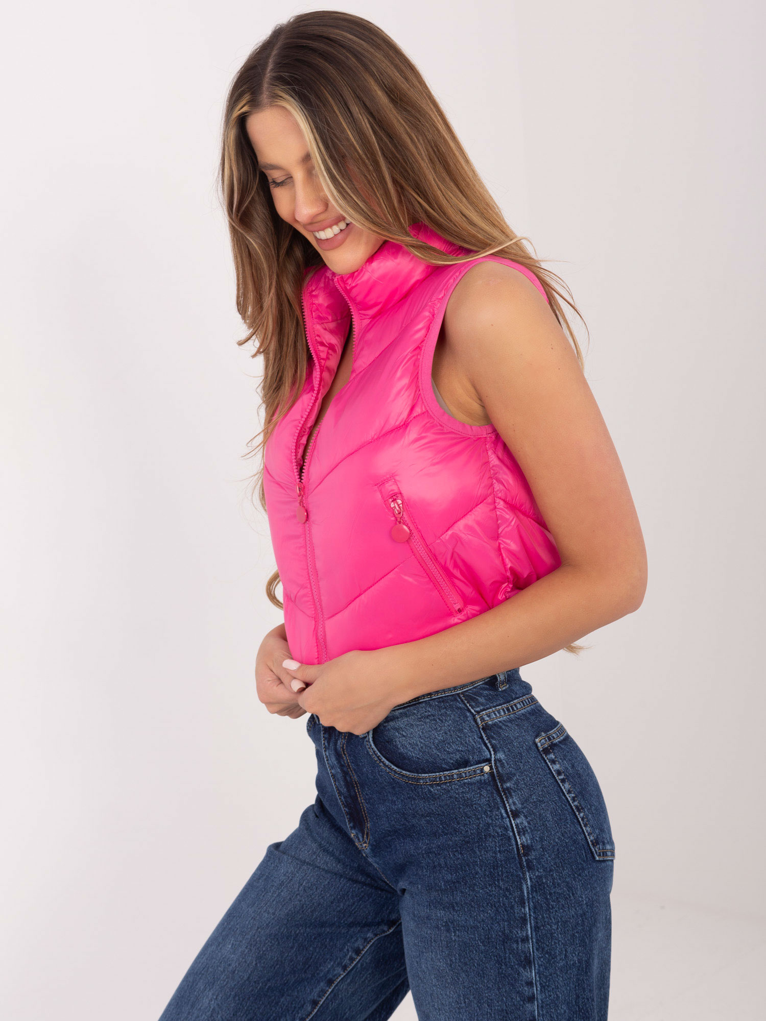 Hurt Ciemnoróżowa krótka kamizelka puchowa z pikowaniem