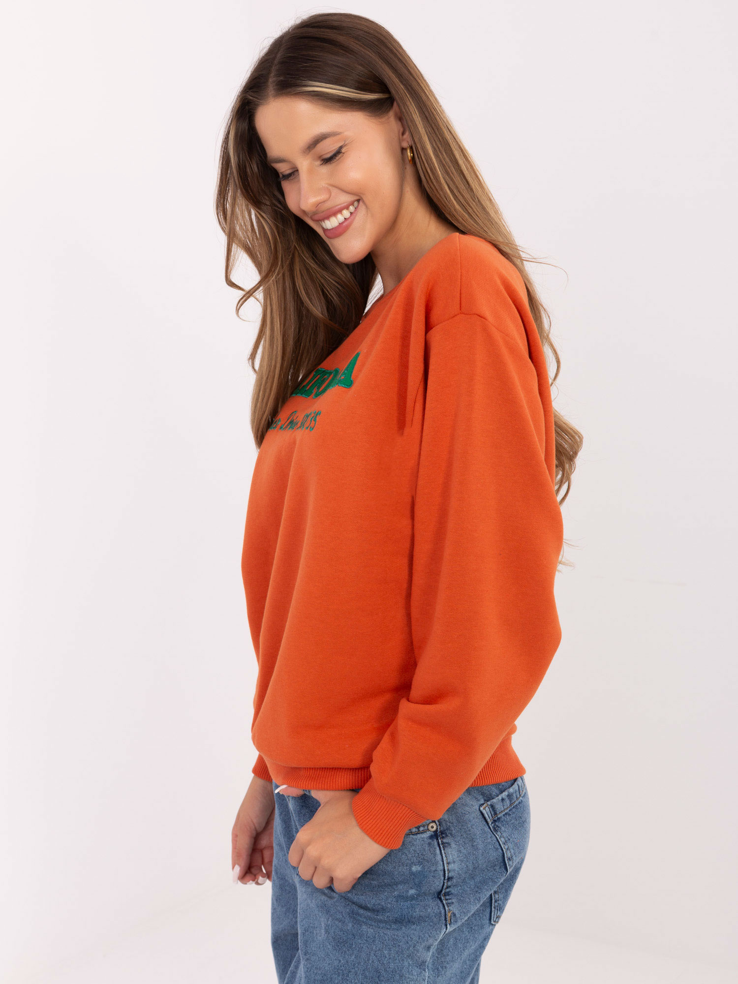 Opinie o Hurt Ciemnopomarańczowa luźna bluza bez kaptura z napisami