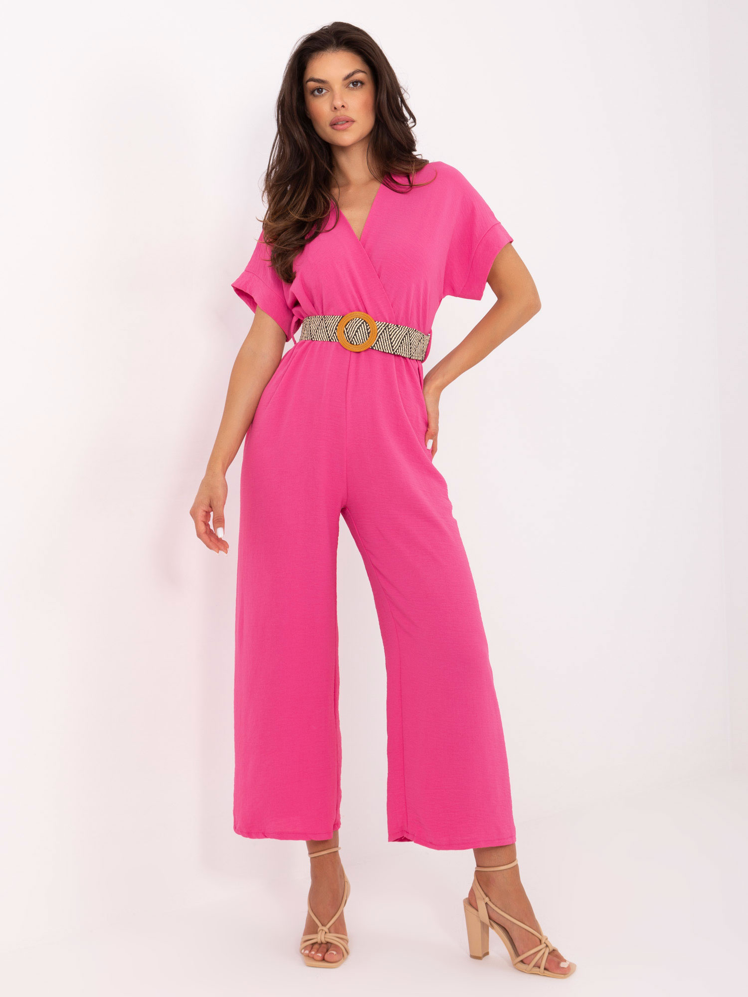 Hurt Ciemnoróżowy kombinezon z kopertowym dekoltem .