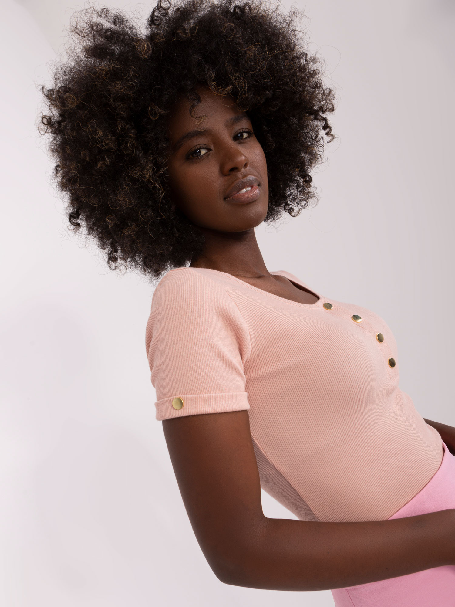 Opinie o Hurt Brudnoróżowa prążkowana bluzka damska OCH BELLA
