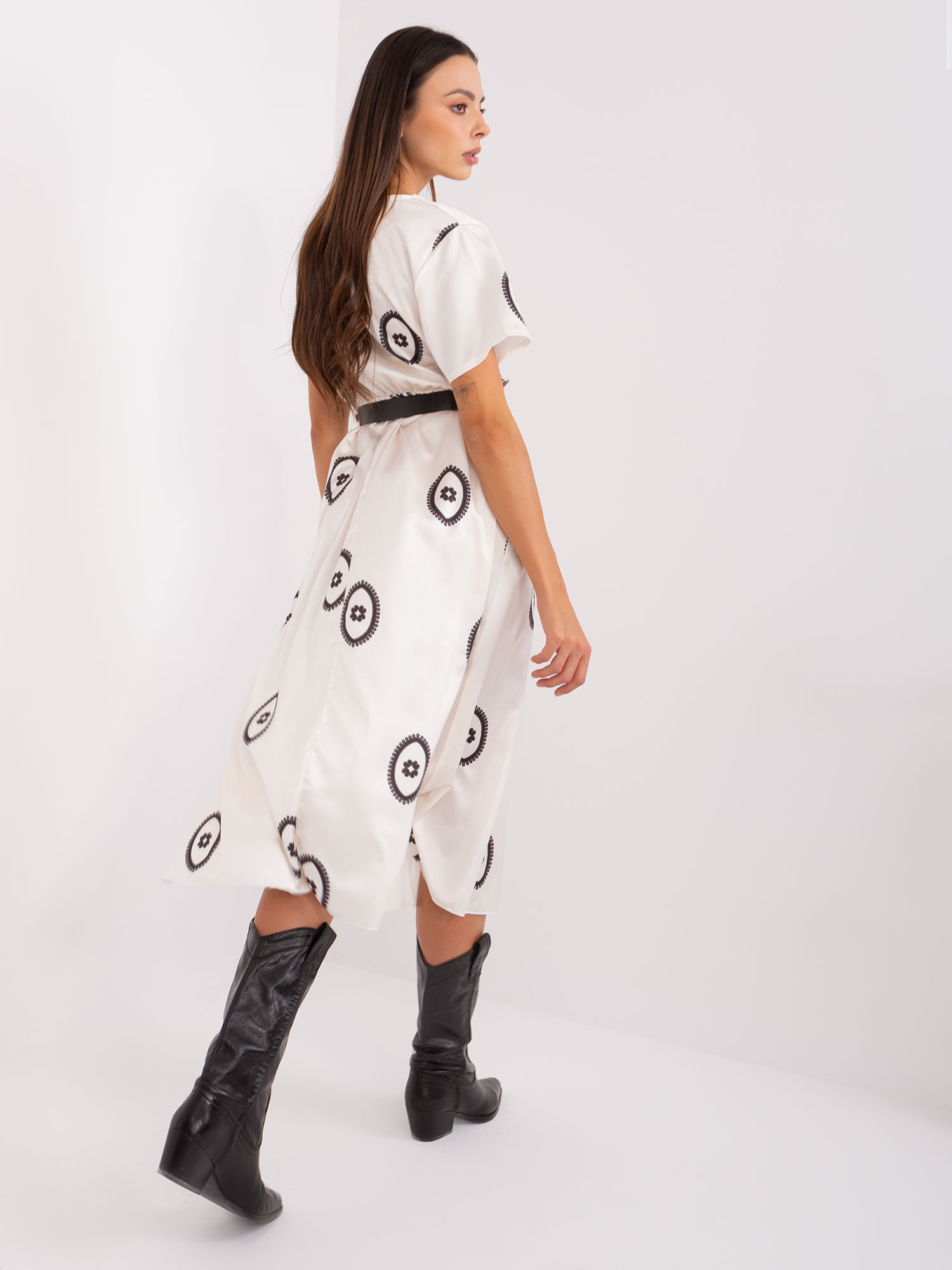 Hurt Ecru midi sukienka koktajlowa z paskiem