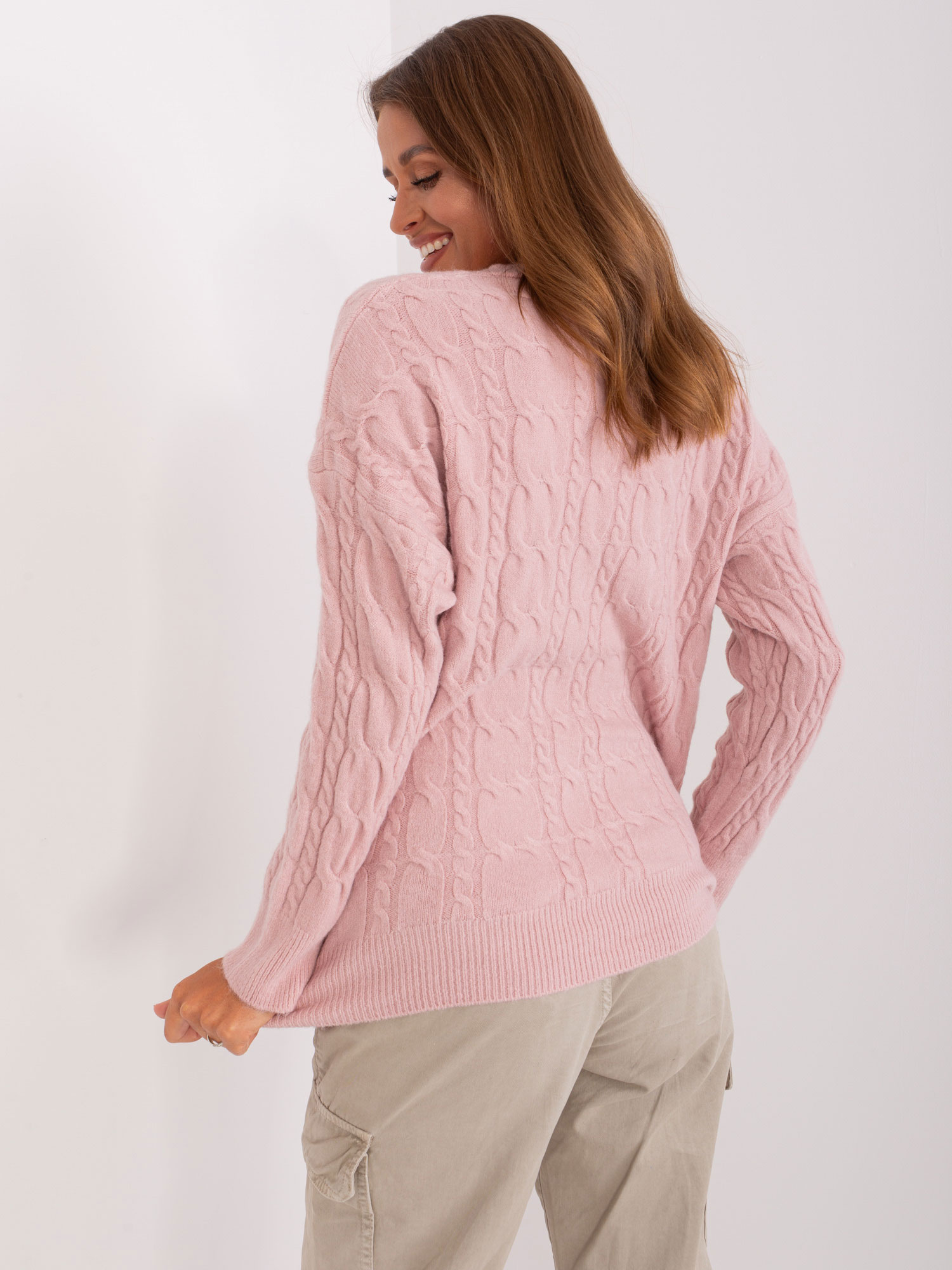 Hurt Jasnoróżowy klasyczny sweter z warkoczami