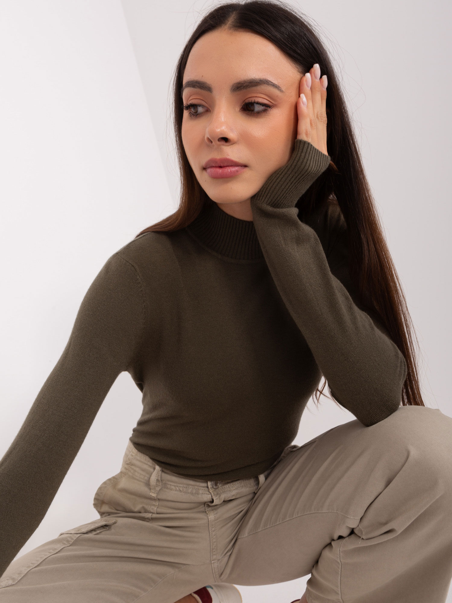 Opinie o Hurt Khaki damski sweter z golfem i ściągaczami