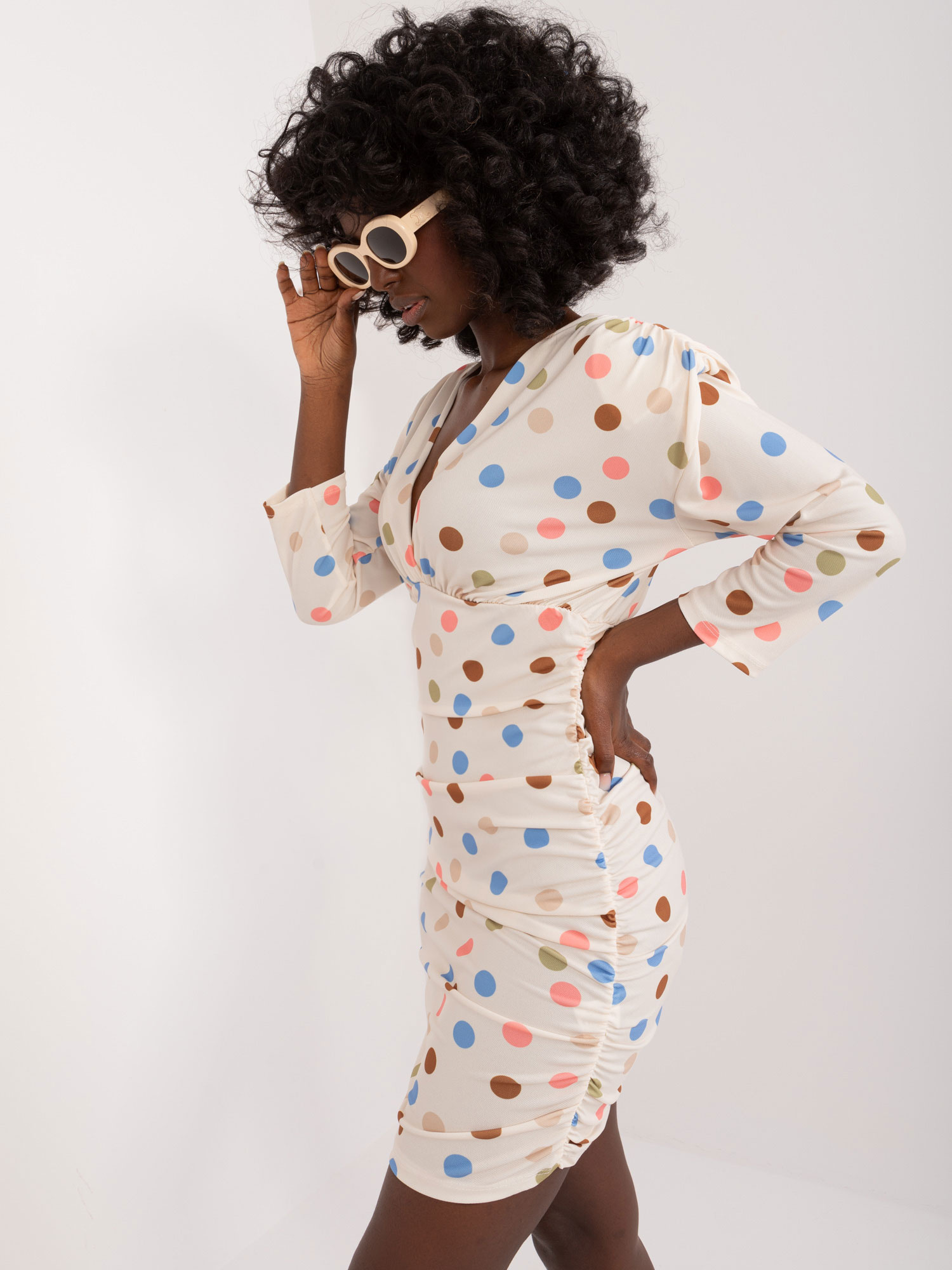 Hurtownia Kremowa dopasowana sukienka w grochy