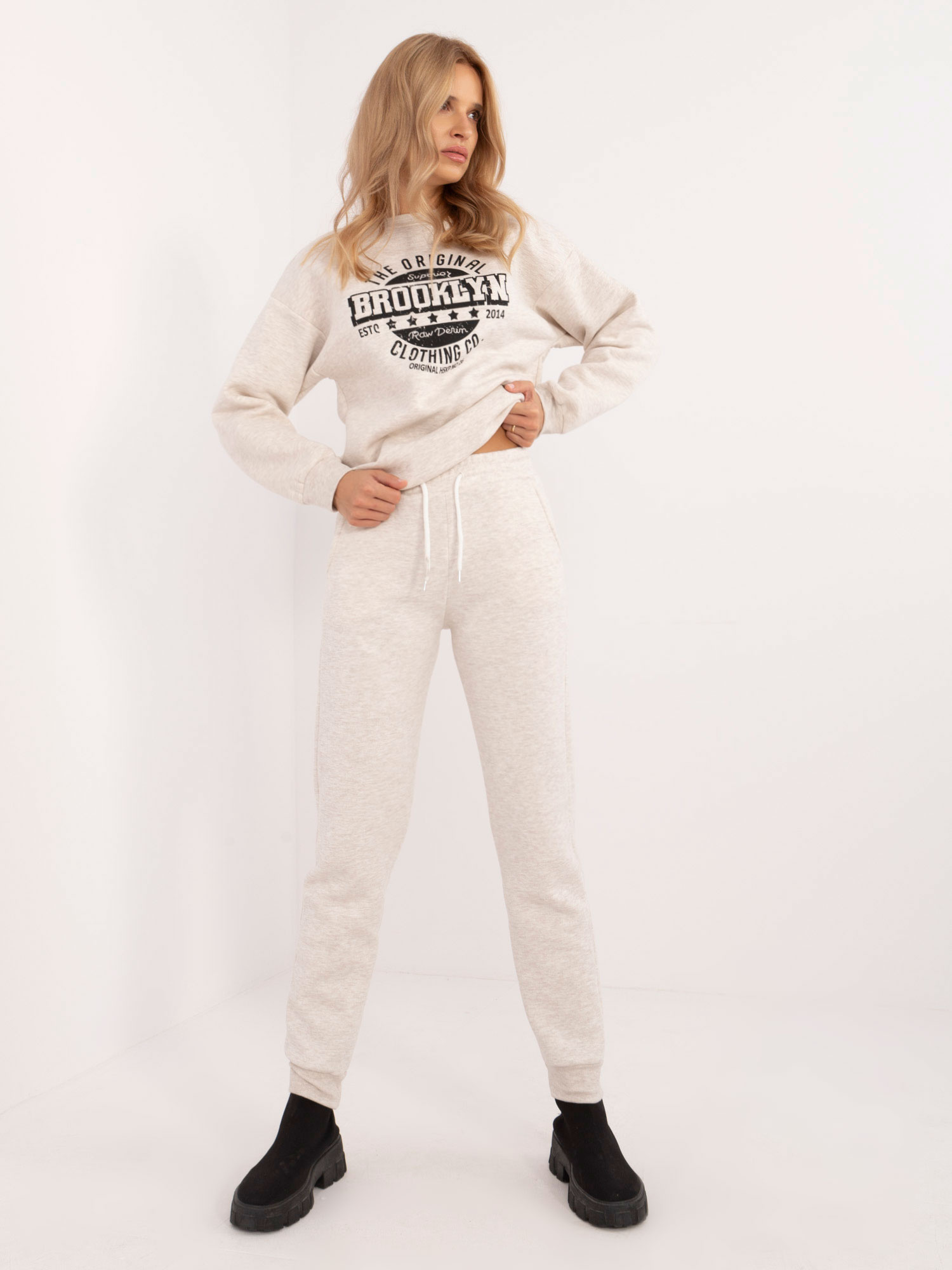 Jasnobeżowe melanżowe spodnie dresowe damskie z wiązaniem .