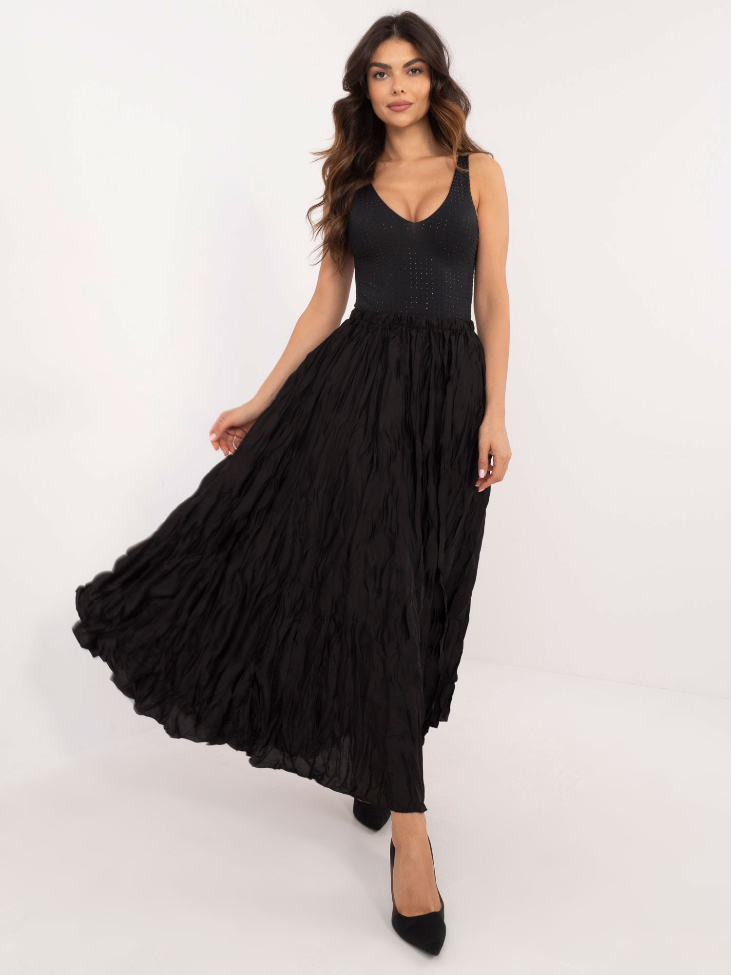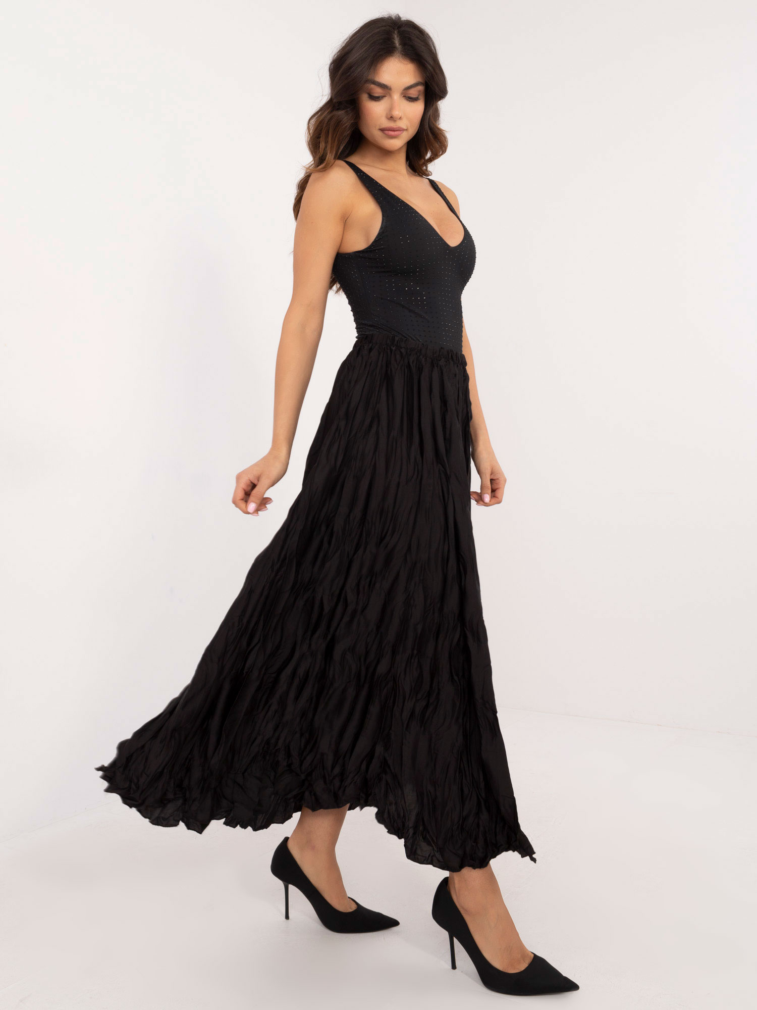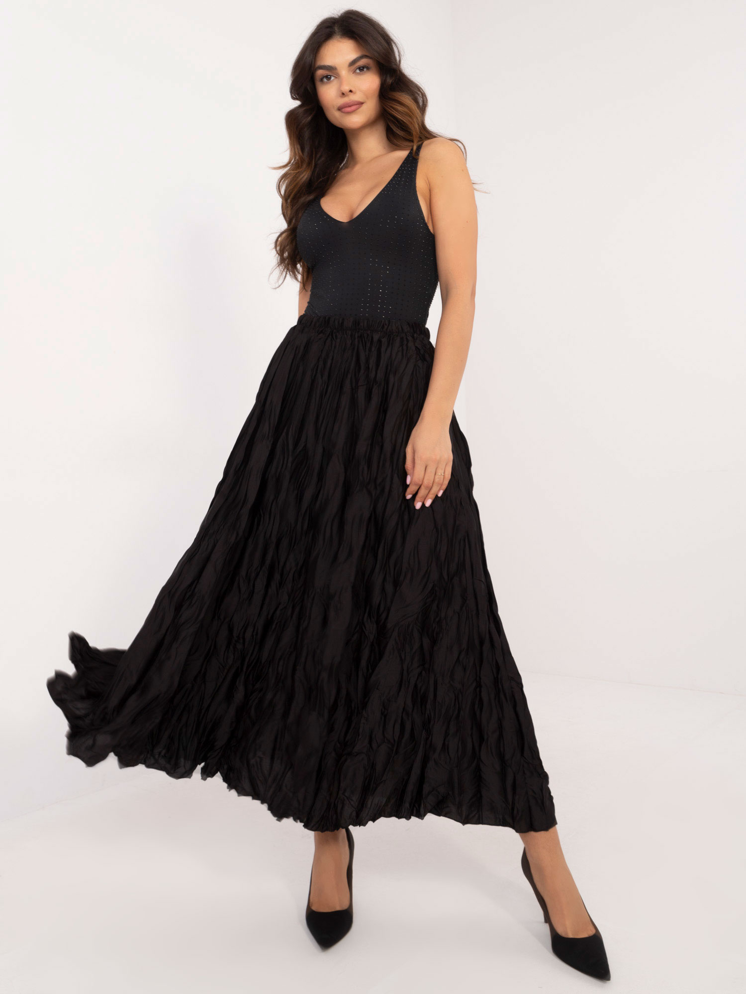 Hurtownia Czarna długa spódnica z gniecionej tkaniny