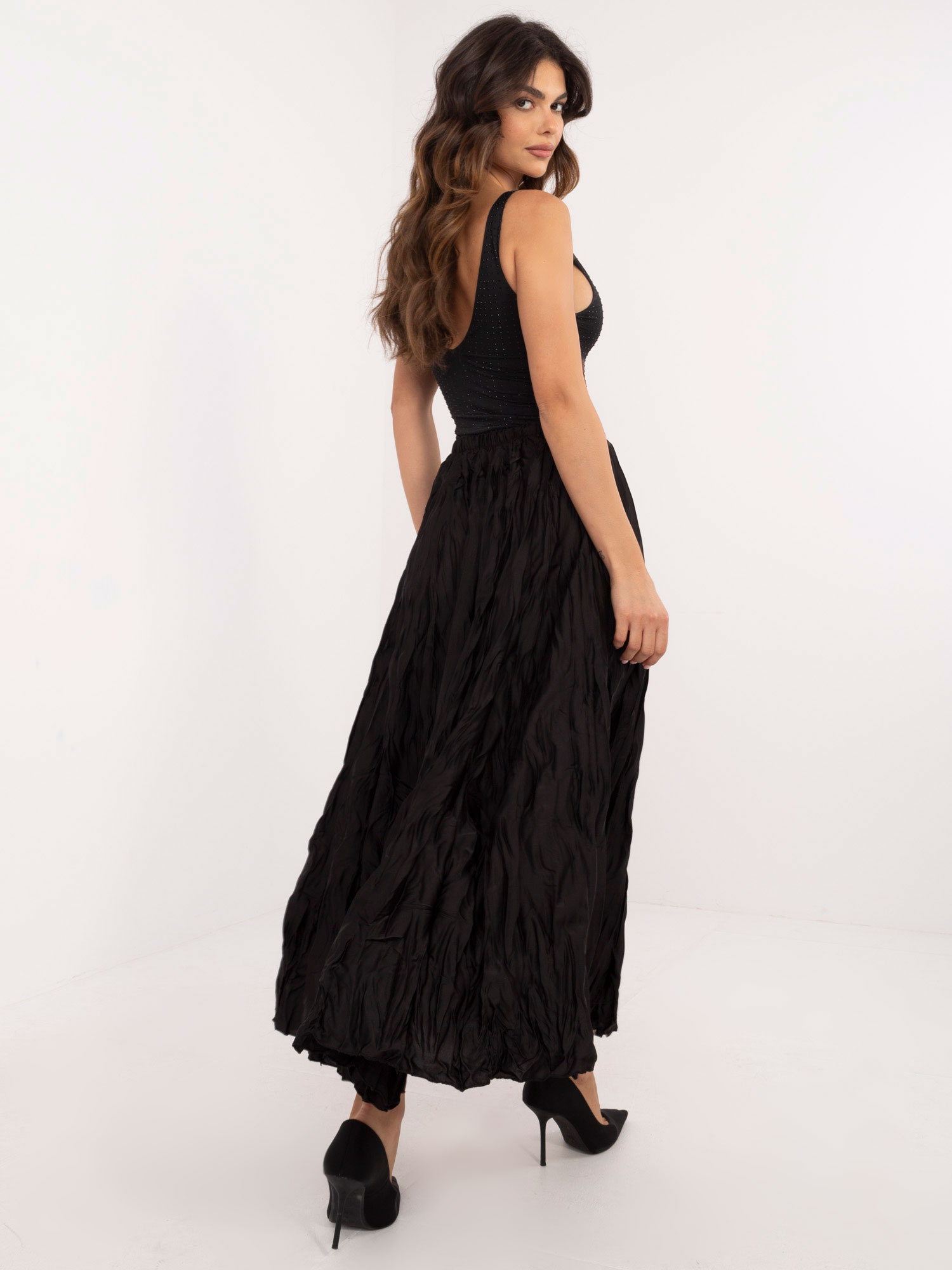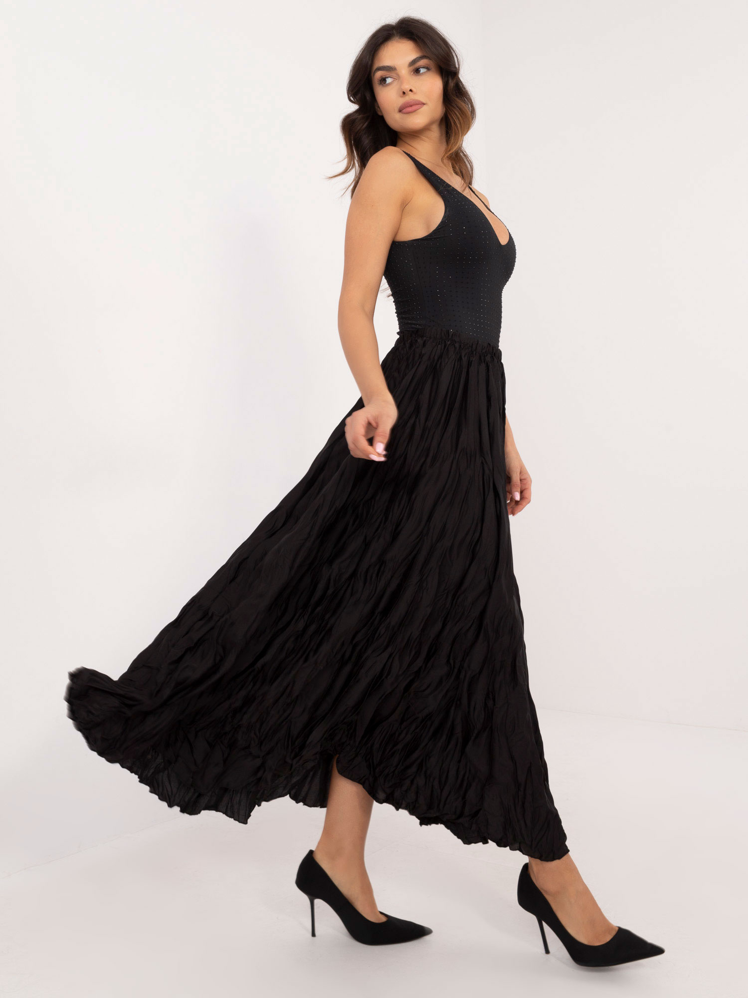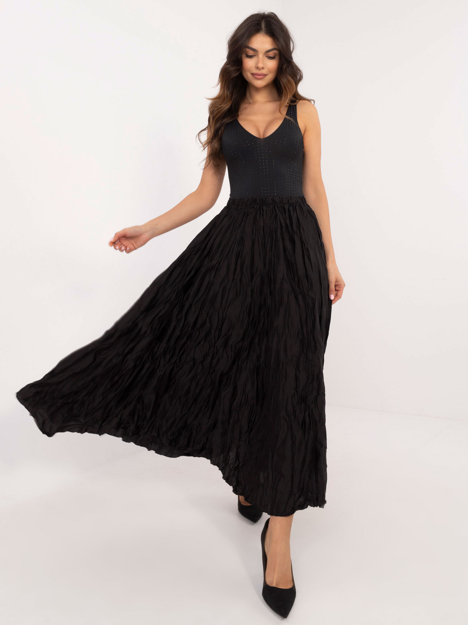 Hurtownia Czarna długa spódnica z gniecionej tkaniny