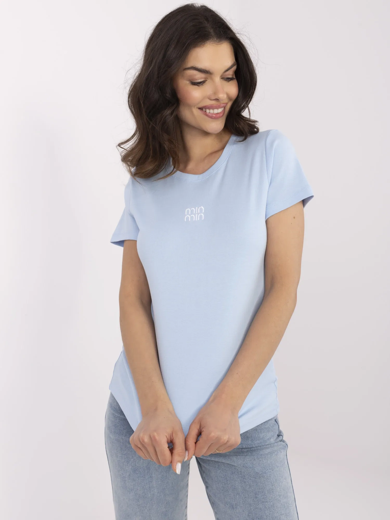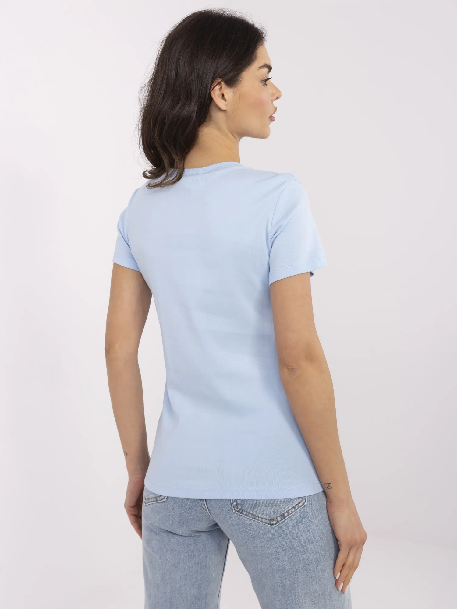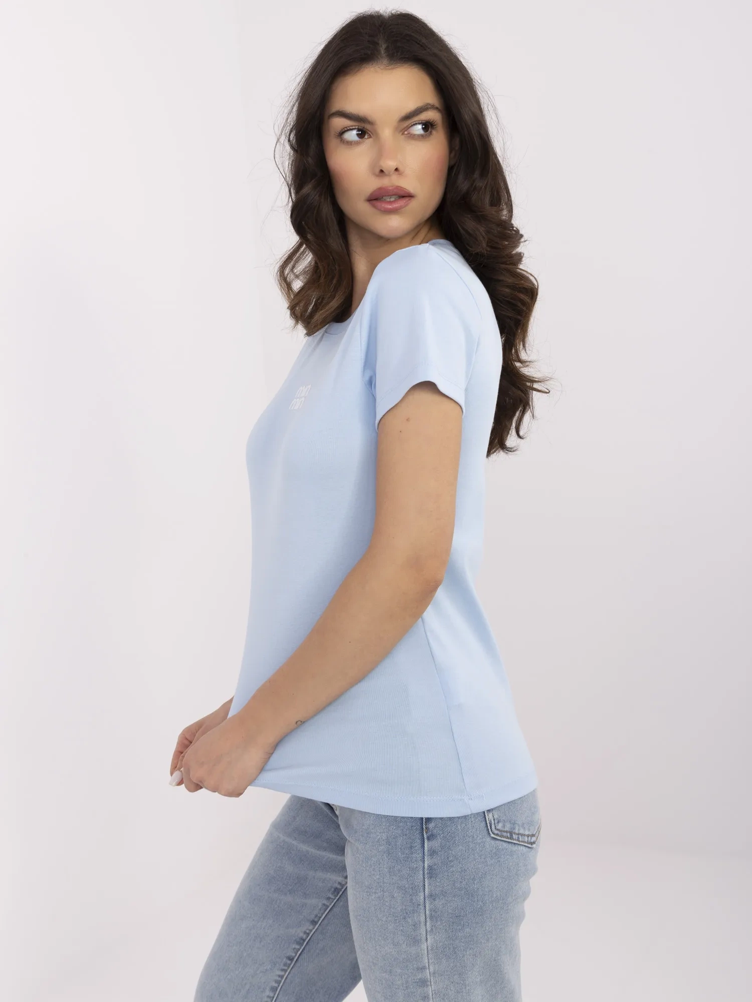 Jasnoniebieska damska bluzka z krótkim rękawem .