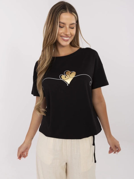 Czarny damski t-shirt z nadrukiem