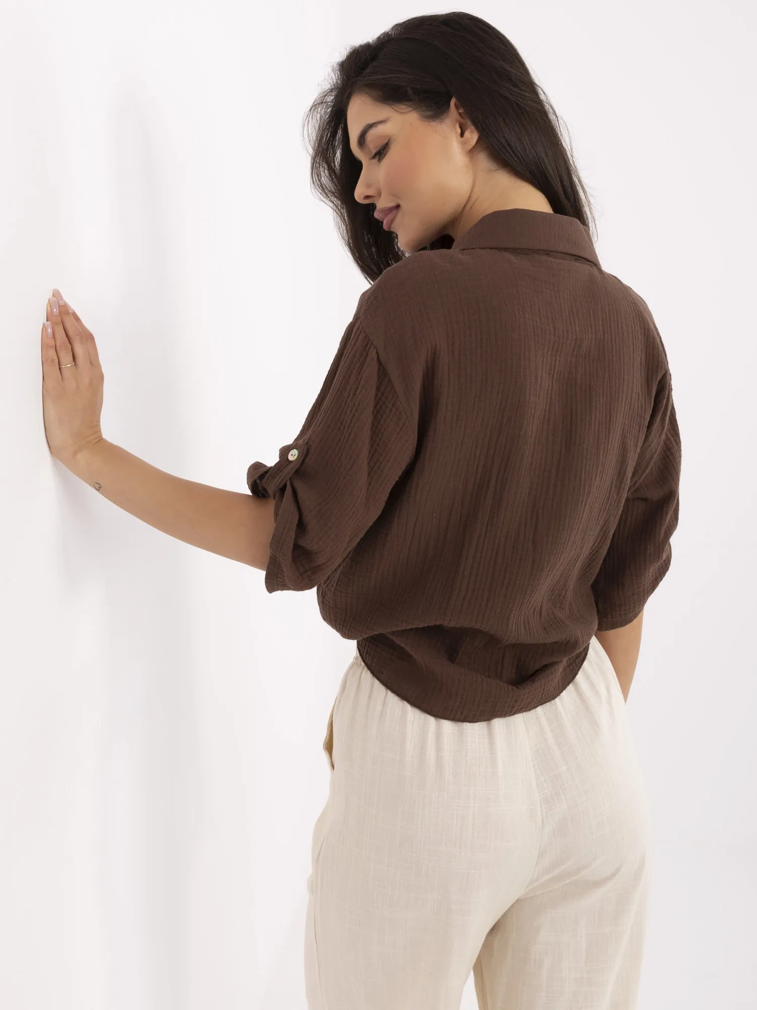 Brązowa rozpinana koszula z muślinu