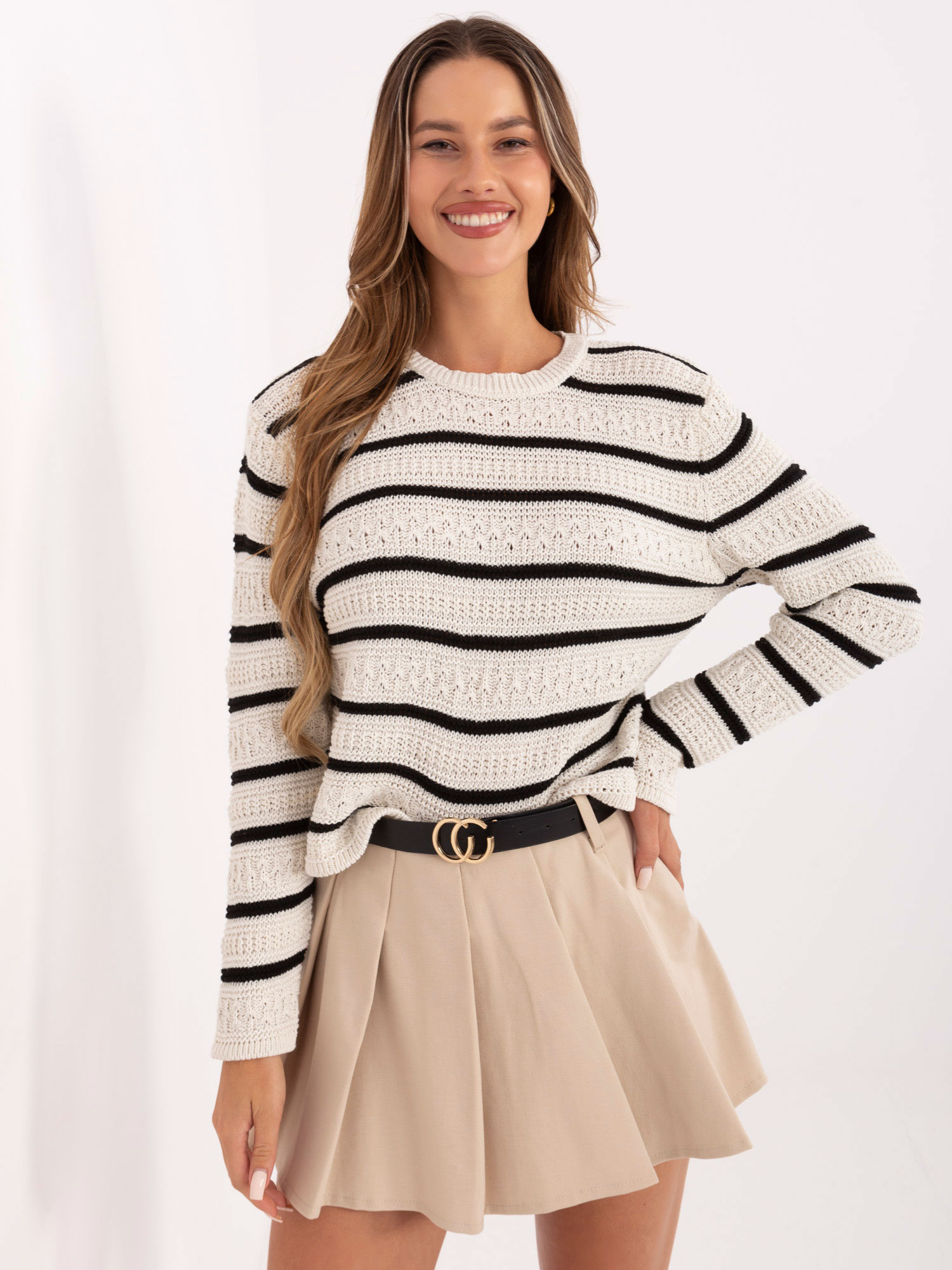 Ecru-czarny damski sweter w paski RUE PARIS .