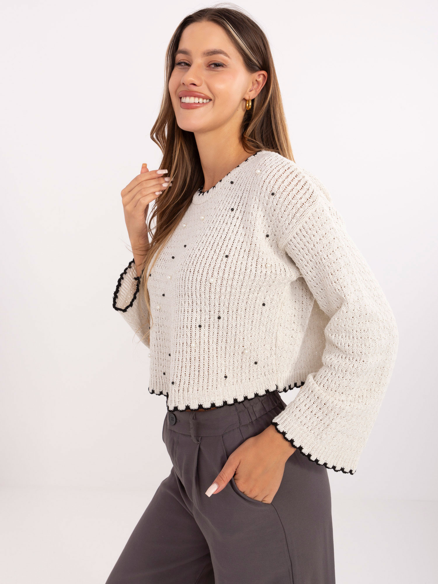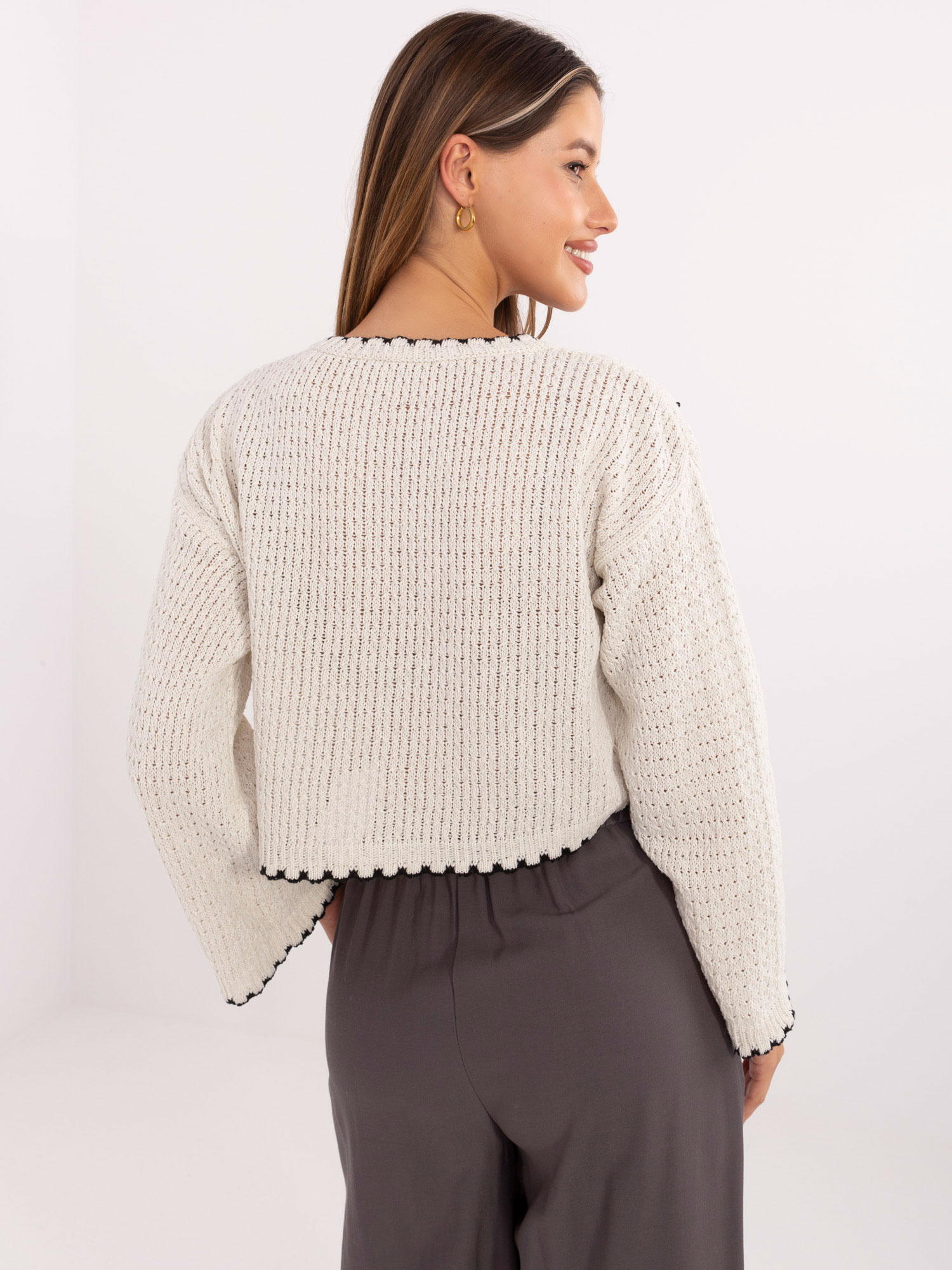 Ecru damski sweter z szerokimi rękawami RUE PARIS .