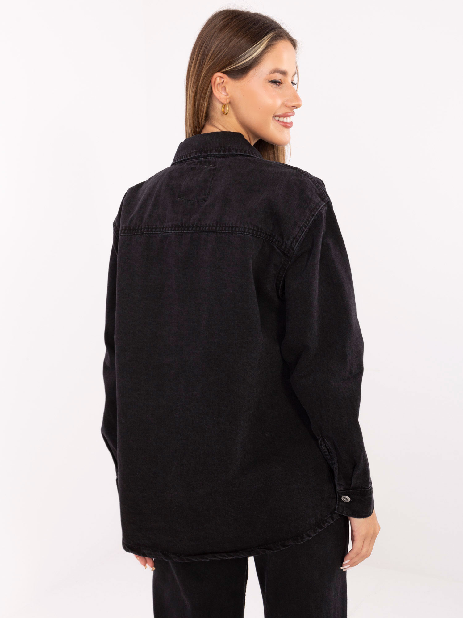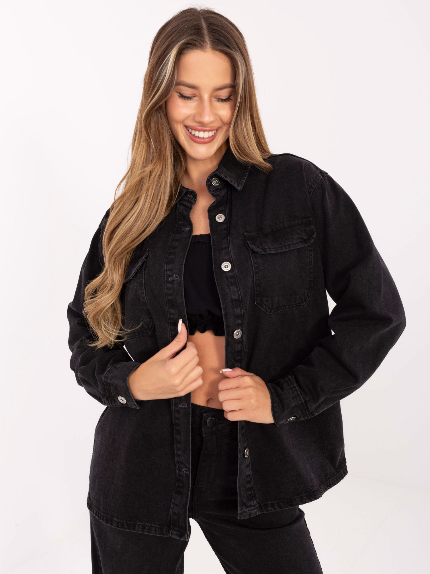 Czarna jeansowa kurtka z kieszeniami SUBLEVEL .