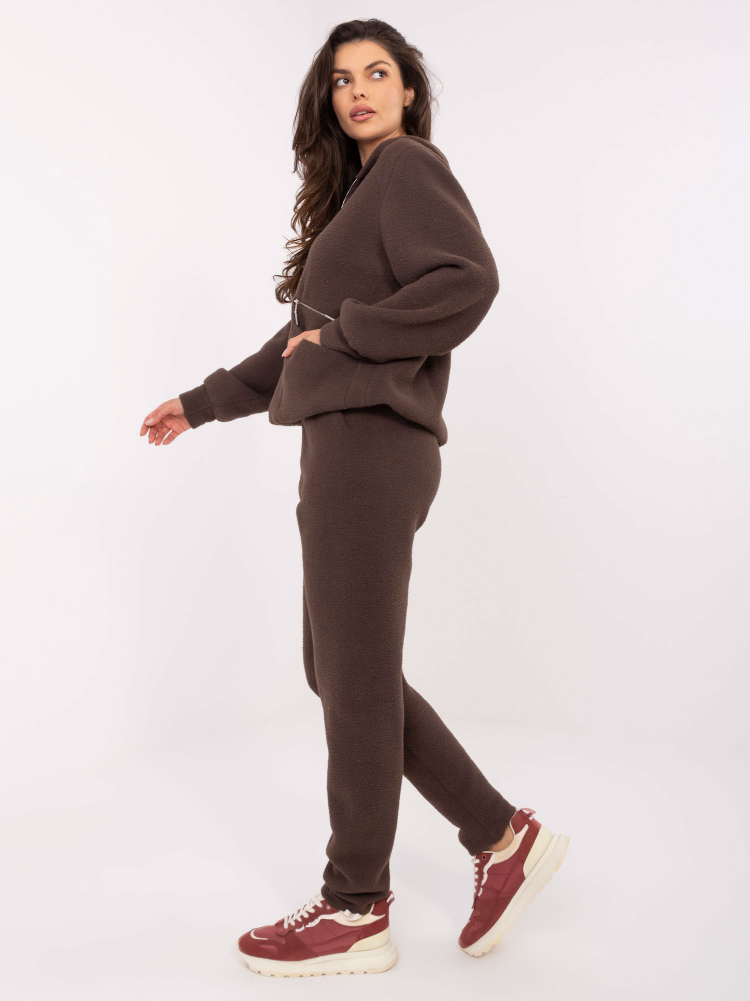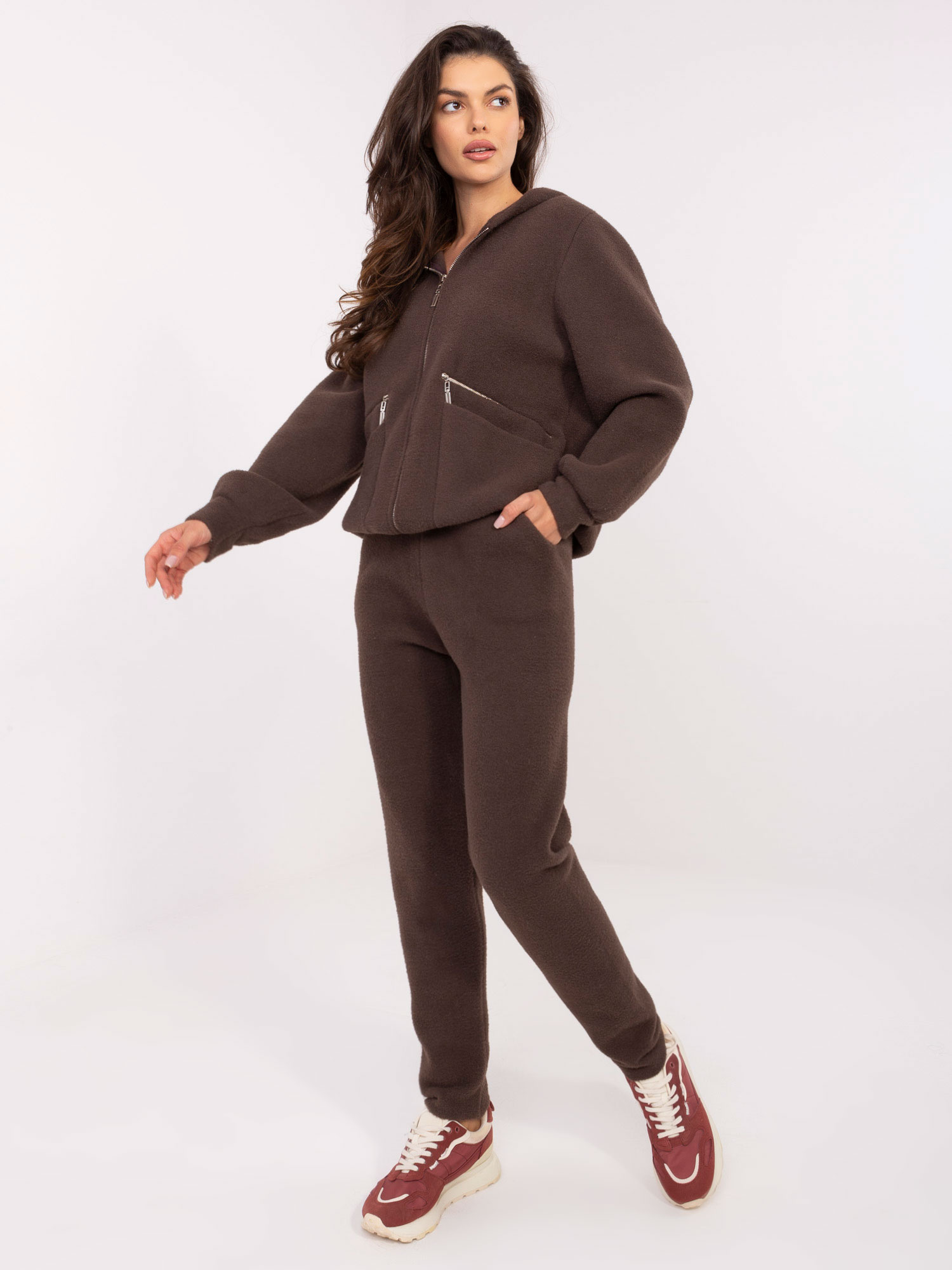 Brązowy swetrowy komplet z rozpinaną bluzą