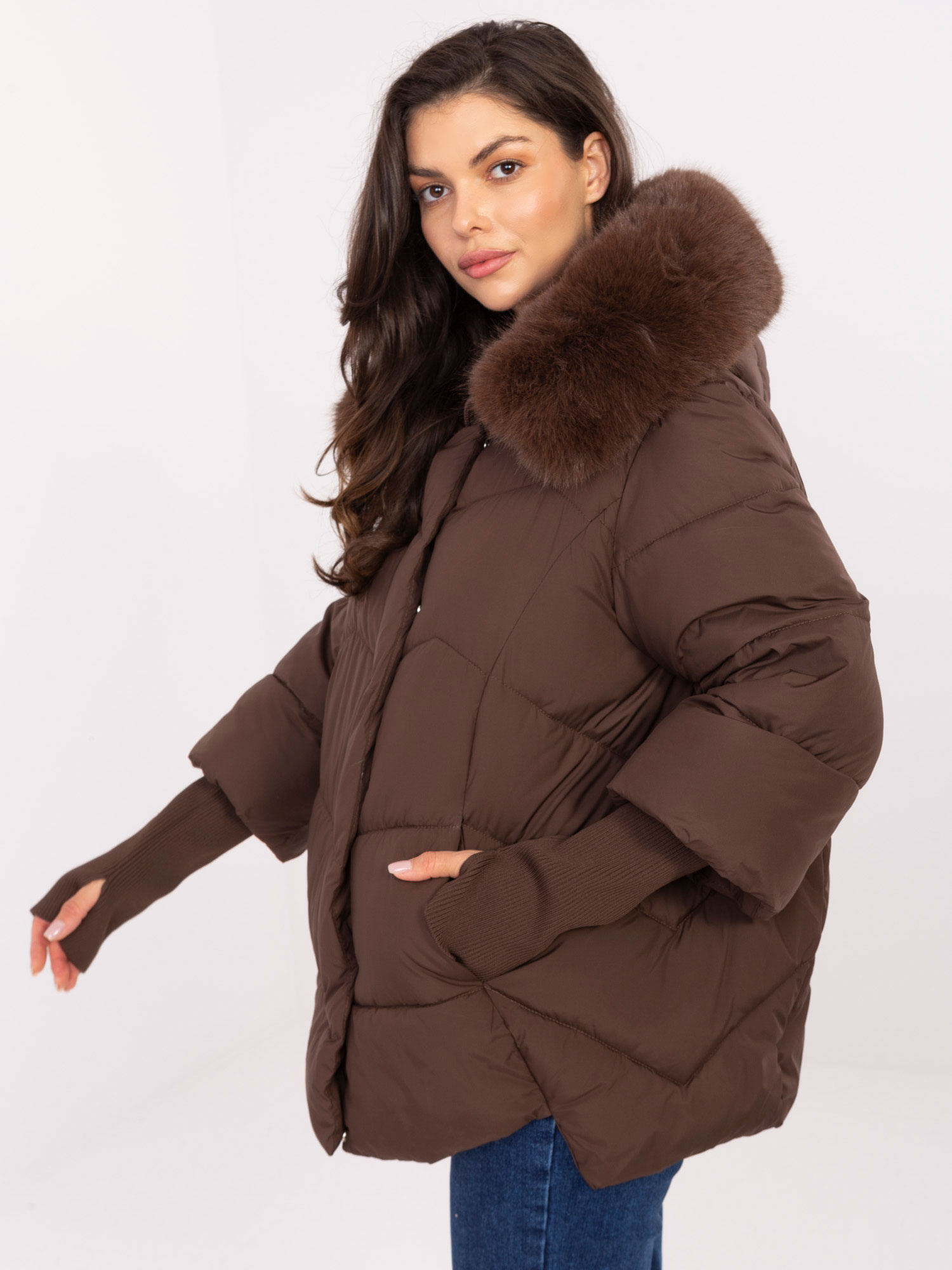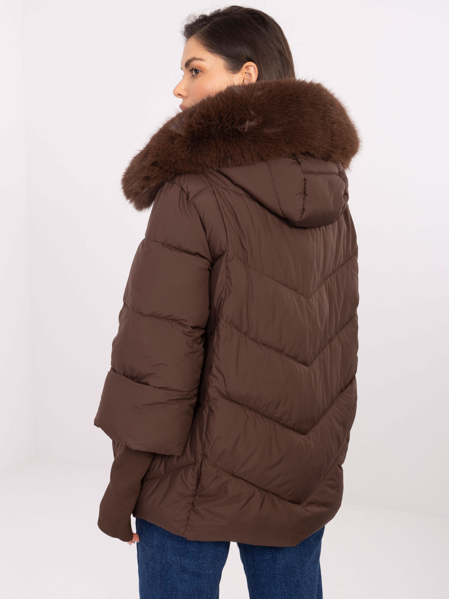Brązowa puchowa kurtka z odpinanym futrem