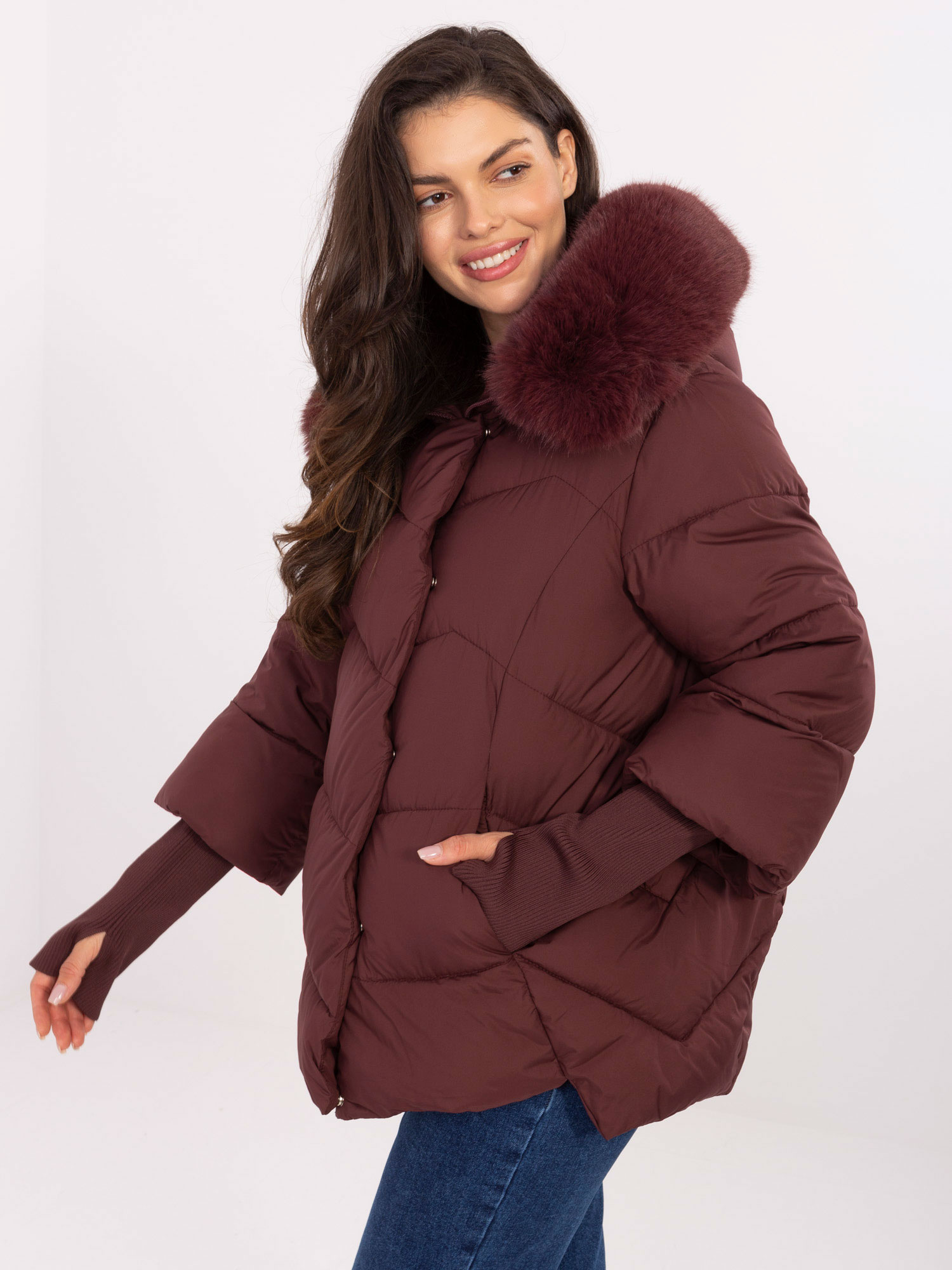 Bordowa zimowa kurtka z pikowaniem
