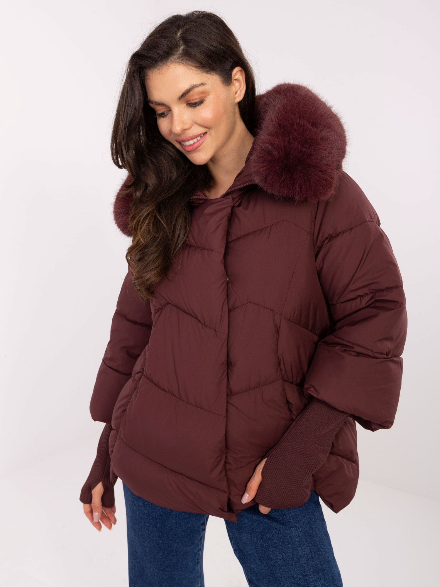 Bordowa zimowa kurtka z pikowaniem .